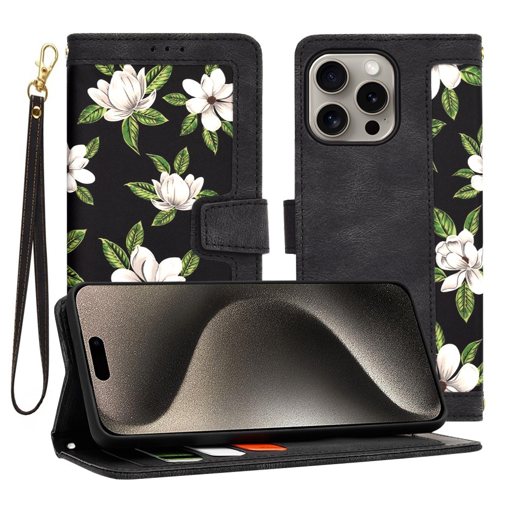 Puzdro Techsuit FlipCraft Flowers of the Dawn pre iPhone 15 Pro Max je navrhnuté ako elegantné flipové puzdro, ktoré poskytuje komplexnú ochranu celého telefónu. Jeho dominantou je čierny podklad zdobený nádherným kvetinovým vzorom bielych kvetov, pripomínajúcich magnólie, s jemnými zelenými lístkami. Tento motív dodáva puzdru svieži a zároveň sofistikovaný vzhľad, ideálny pre každodenné nosenie aj špeciálne príležitosti.