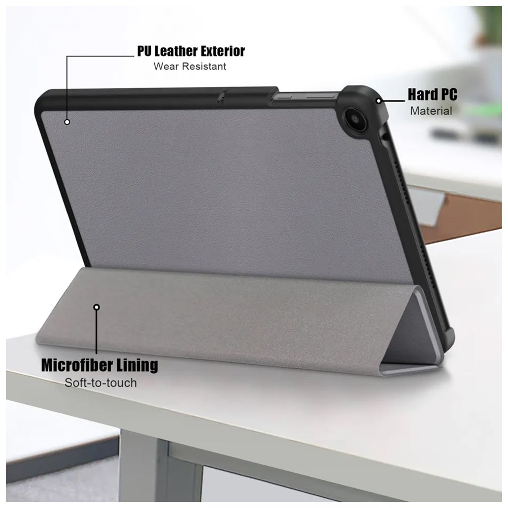 Dizajn puzdra Techsuit FoldPro v klasickej čiernej farbe je synonymom pre minimalizmus a eleganciu. Jeho povrch je opatrený jemnou textúrou, ktorá nielenže príjemne padne do ruky, ale taktiež zabraňuje vykĺznutiu a odtlačkom prstov. Puzdro je precízne vyrobené s ohľadom na všetky detaily, vrátane presných výrezov pre fotoaparát, tlačidlá a nabíjacie porty, čo zaisťuje bezproblémový prístup ku všetkým funkciám tabletu. Vďaka svojej skladacej konštrukcii slúži puzdro zároveň ako praktický stojan, ktorý umožňuje pohodlné sledovanie videí, prezeranie fotografií alebo písanie v niekoľkých uhloch.