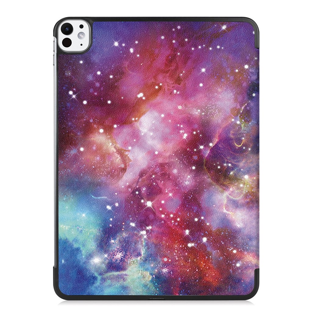 - Puzdro Techsuit FoldPro sa pýši úchvatným dizajnom s motívom galaktickej hmloviny, ktorý hrá všetkými farbami – od sýto fialovej a modrej až po ružovú, doplnenú o žiarivé hviezdy. Tento živý a detailný potlač premení váš tablet na umelecké dielo.