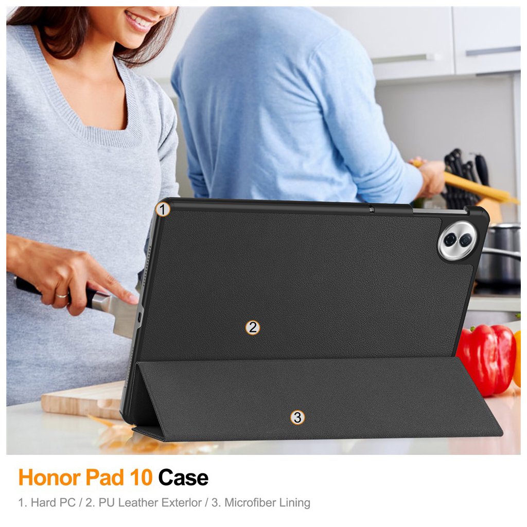 Predstavujeme vám Techsuit FoldPro v elegantnej čiernej farbe, navrhnutý špeciálne pre váš tablet Honor Pad 10. Tento obal je dokonalou kombináciou sofistikovaného dizajnu a maximálnej funkčnosti, ktorá zabezpečí, že váš tablet bude vždy v bezpečí a pripravený na použitie.