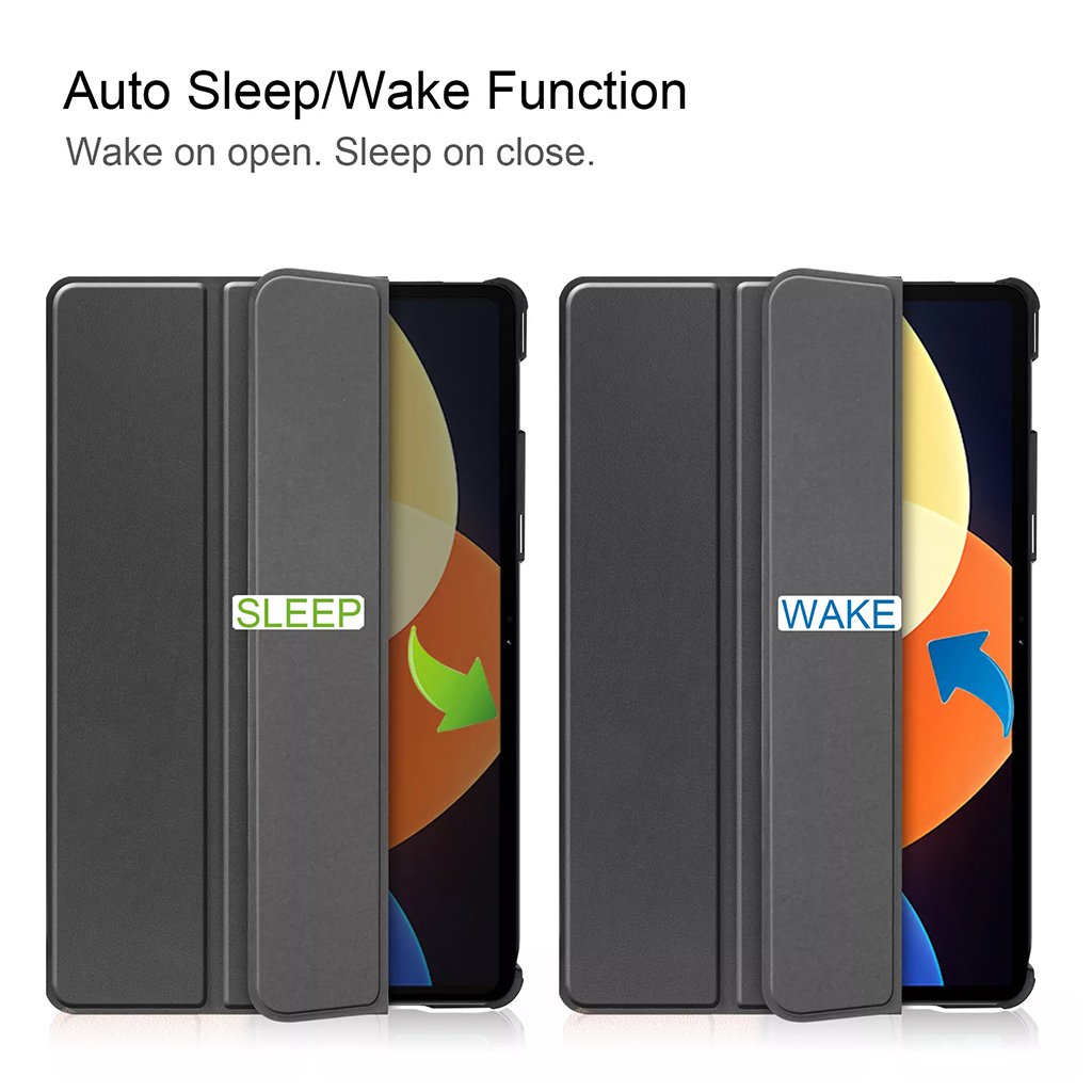 Puzdro tiež podporuje funkciu automatického prebudenia/uspania, kedy sa tablet prebudí otvorením krytu a uspí jeho zatvorením, čím efektívne šetrí batériu.