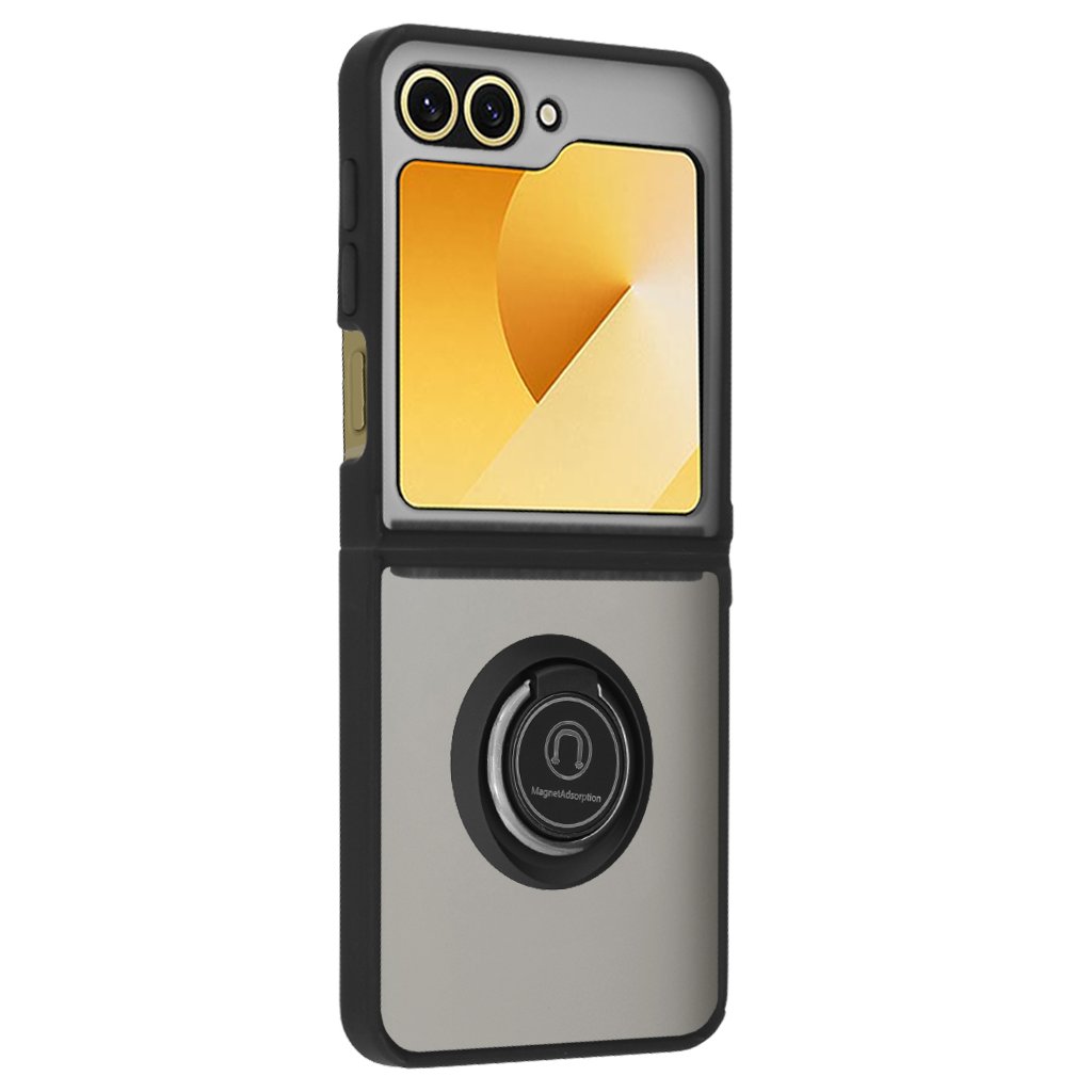 Puzdro Techsuit Glinth sa skladá z dvoch precízne navrhnutých dielov, ktoré dokonale obopínajú hornú aj spodnú časť vášho skladacieho telefónu. Jeho čierna matná povrchová úprava dodáva zariadeniu prémiový vzhľad a príjemný pocit na dotyk. Kľúčovým prvkom dizajnu je integrovaný krúžok na zadnej strane, ktorý slúži nielen ako bezpečný úchyt pre pohodlné držanie telefónu, ale aj ako praktický stojan pre sledovanie obsahu bez použitia rúk. Navyše je tento krúžok vybavený magnetickou absorpciou, čo umožňuje jednoduché a stabilné pripevnenie telefónu k magnetickým držiakom v aute či kancelárii.
