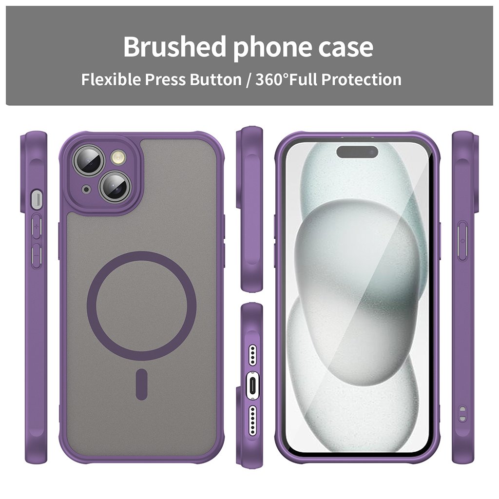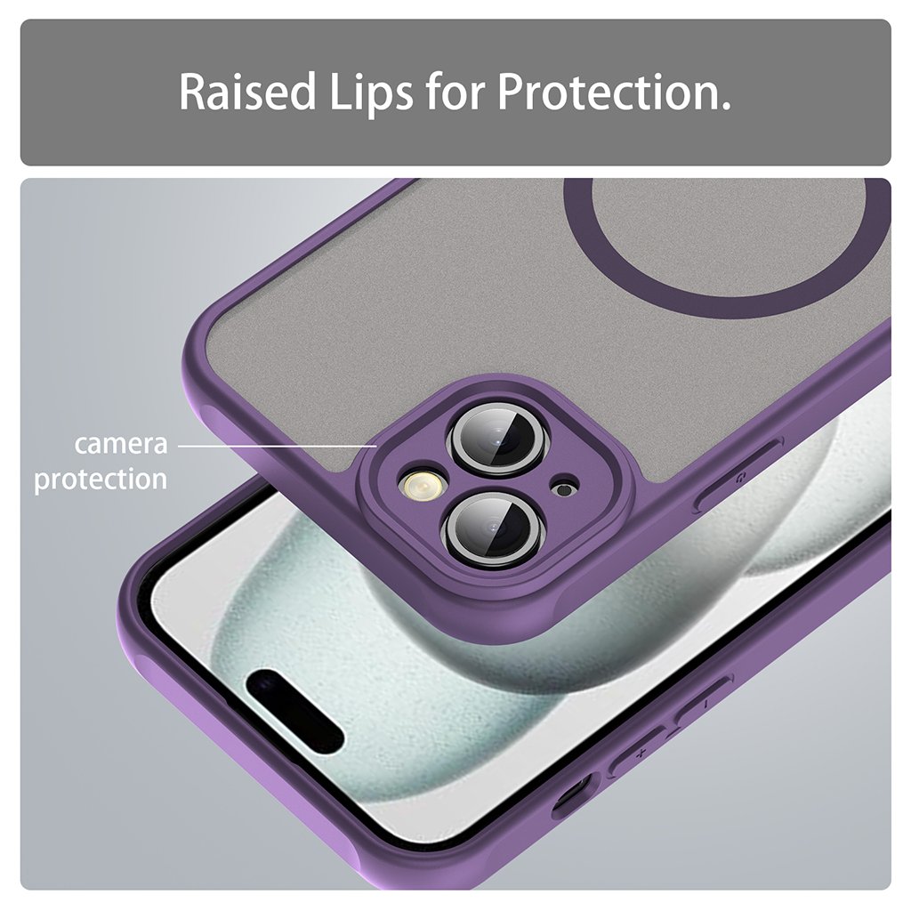 Puzdro Techsuit HaloFrost II MagSafe sa pýši sofistikovaným vzhľadom, ktorý podtrhne eleganciu vášho telefónu. Zadná strana krytu je vyrobená z priesvitného matného materiálu v šedom odtieni, ktorý decentne presvitá logo Apple a zároveň chráni pred otlačkami prstov a drobnými škrabancami. Okraje puzdra a rámček okolo modulu fotoaparátu sú v atraktívnej fialovej farbe, ktorá dodáva celkovému dizajnu šmrnc a osobitosť.
