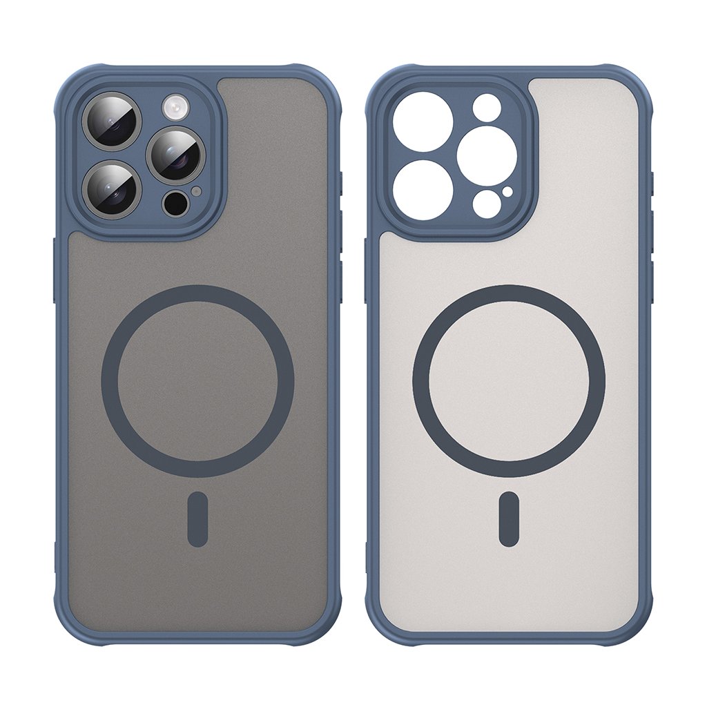 Puzdro Techsuit HaloFrost II MagSafe sa pýši sofistikovaným dizajnom, ktorý dokonale dopĺňa estetiku vášho iPhone 15 Pro Max. Zadná strana krytu je vyrobená z polopriesvitného materiálu, ktorý decentne odhaľuje originálny dizajn telefónu a zároveň mu dodáva moderný vzhľad. Okraje puzdra a zvýšený rámček okolo modulu fotoaparátu sú v námorníckej modrej farbe, čo vytvára elegantný kontrast a zaisťuje zvýšenú ochranu objektívov pred poškriabaním a nárazmi. Integrovaný MagSafe krúžok na zadnej strane zaručuje bezproblémovú kompatibilitu s MagSafe príslušenstvom a rýchle bezdrôtové nabíjanie. Tlačidlá sú precízne spracované a poskytujú istý stisk, zatiaľ čo presné výrezy pre konektory a reproduktory zaisťujú neobmedzenú funkčnosť vášho zariadenia.
