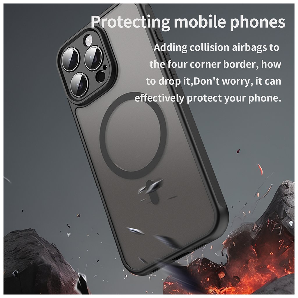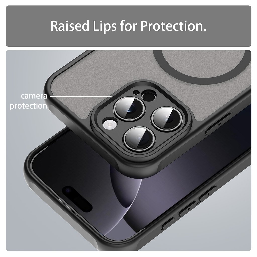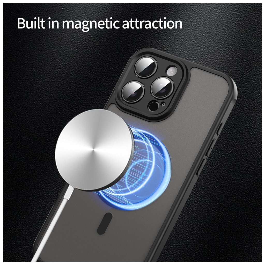 Puzdro Techsuit HaloFrost II MagSafe sa vyznačuje polopriesvitným matným povrchom na zadnej strane, ktorý dodáva telefónu moderný vzhľad a zároveň zabraňuje ulpievaniu odtlačkov prstov. Okraje puzdra sú vyrobené z odolného čierneho materiálu, ktorý efektívne tlmí nárazy a chráni hrany zariadenia.