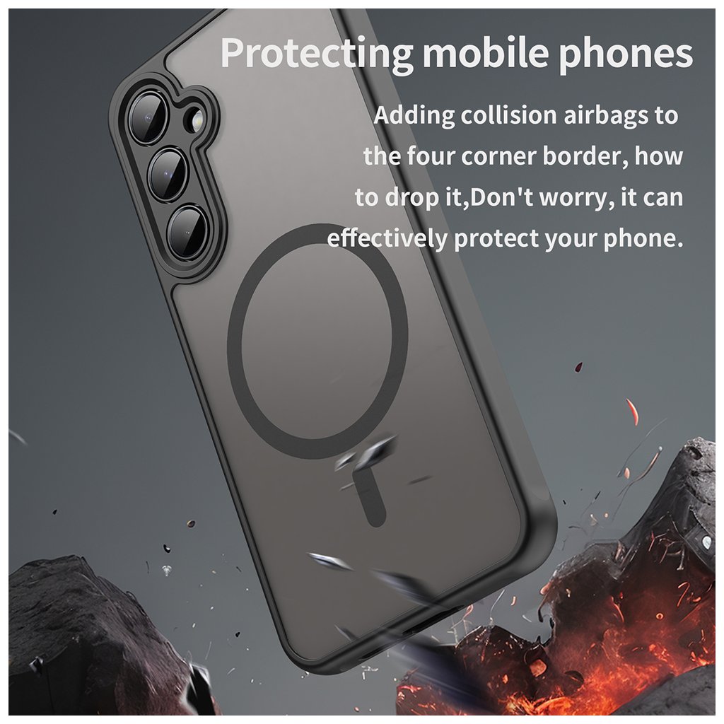 Puzdro Techsuit HaloFrost II MagSafe v elegantnej čiernej farbe sa pýši minimalistickým a zároveň robustným dizajnom. Jeho zadná strana je vyrobená z priesvitného, matného materiálu, ktorý dodáva telefónu sofistikovaný vzhľad a zároveň je odolný proti odtlačkom prstov, mastnote a vode. Integrovaný MagSafe krúžok zaisťuje perfektnú kompatibilitu s MagSafe príslušenstvom a bezdrôtovým nabíjaním.