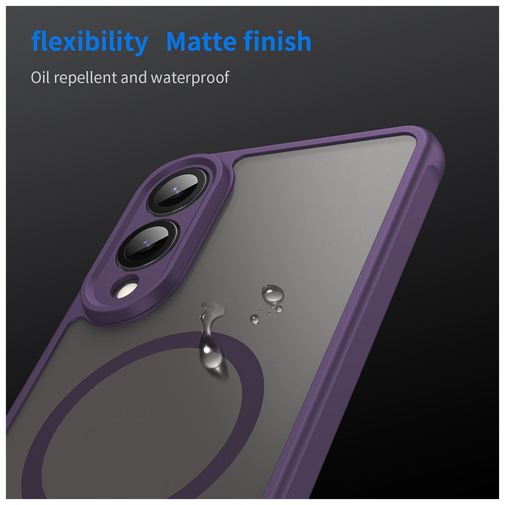 - Dominantným prvkom zadnej strany je integrovaný MagSafe krúžok, rovnako vo fialovej farbe, ktorý zaisťuje perfektnú kompatibilitu s MagSafe príslušenstvom a bezdrôtovým nabíjaním.