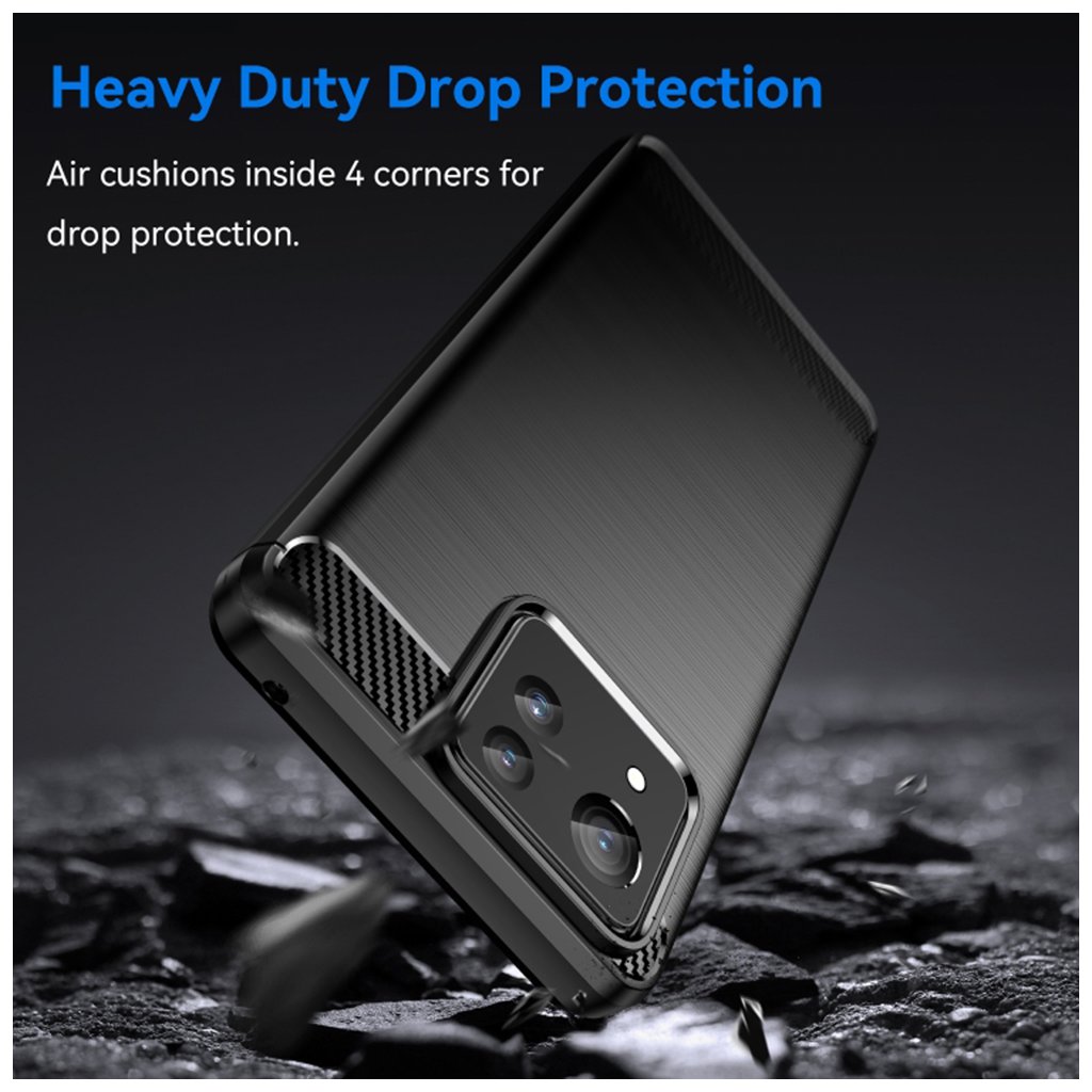 - Dizajn: Elegantná textúra brúseného kovu na zadnej strane, dynamická textúra karbónových vlákien na horných a spodných okrajoch a okolo fotoaparátu.