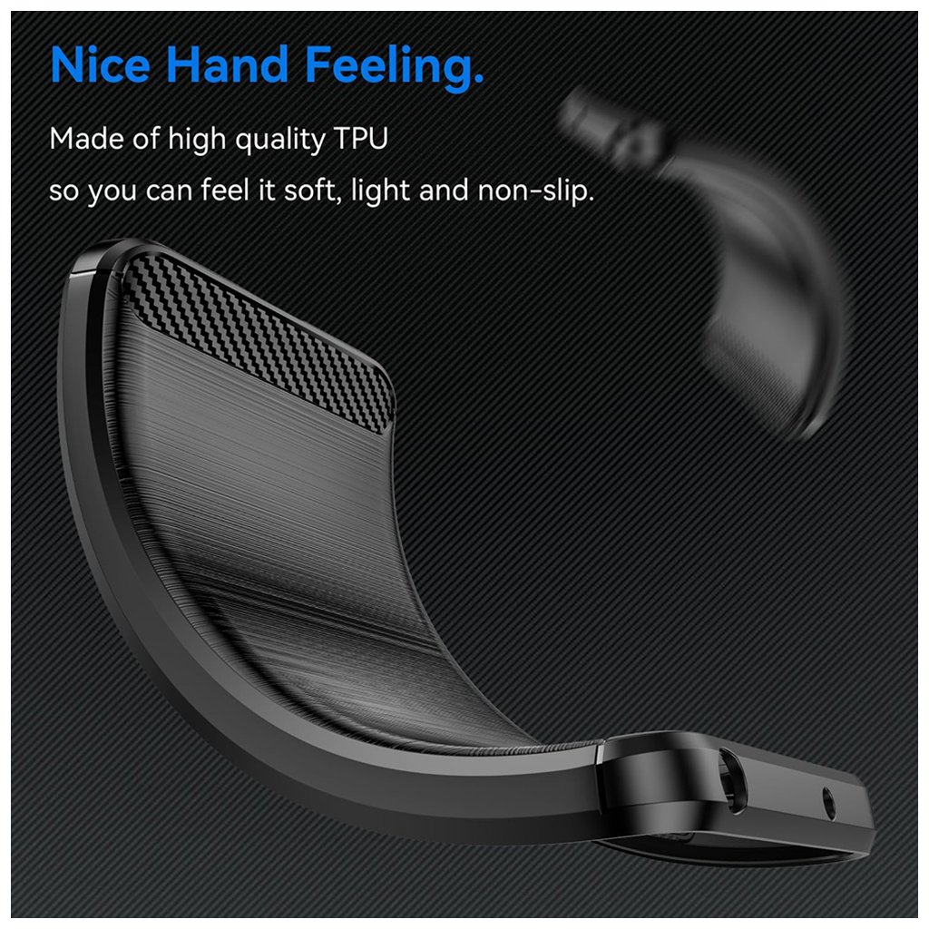 Puzdro Techsuit Carbon Silicone sa pýši **sofistikovaným dizajnom**, ktorý imituje textúru brúseného kovu na zadnej strane. Tento detail mu dodáva **prémiový vzhľad** a zároveň **zlepšuje úchop**, čím minimalizuje riziko vykĺznutia telefónu z ruky. Horná a spodná časť zadnej strany je doplnená o **karbónovú textúru**, ktorá nielenže vyzerá dynamicky, ale taktiež pridáva na odolnosti a ochrane proti nárazom.