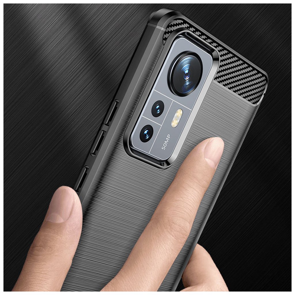 Techsuit Karbón Silikón Puzdro Xiaomi 12 12X Čierny