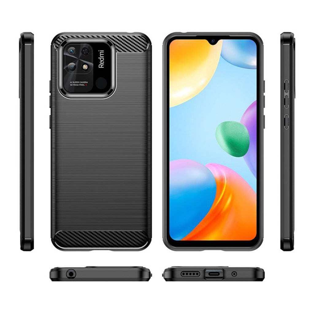 Techsuit Karbón Silikón Puzdro Xiaomi Redmi 10C Čierny