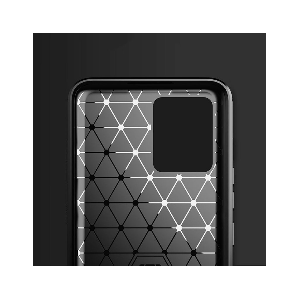 Tento elegantný kryt v čiernej farbe je vyrobený z odolného karbón silikónu, ktorý kombinuje flexibilitu silikónu s robustnosťou a moderným vzhľadom. Zadná strana puzdra je zdobená jemnou textúrou imitujúcou brúsený kov, ktorá dodáva telefónu sofistikovaný vzhľad a zároveň zlepšuje úchop. Horná a dolná časť zadnej strany, rovnako ako okraje okolo modulu fotoaparátu, sú zvýraznené dynamickým vzorom karbónových vlákien, čo podčiarkuje športový a moderný charakter krytu.