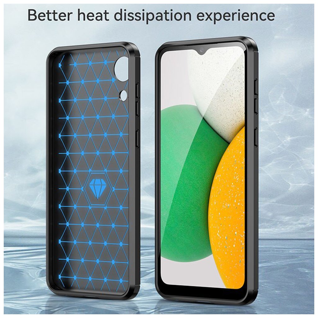 Techsuit Karbon Silikón Samsung Galaxy A03 Core Black Doprajte svojmu telefónu Samsung Galaxy A03 Core prvotriednu ochranu, ktorá nesklame. Puzdro Techsuit Karbon Silikón v elegantnej čiernej farbe je navrhnuté tak, aby dokonale spojilo robustnú ochranu s moderným dizajnom a zaistilo vášmu zariadeniu dlhú životnosť a bezchybný vzhľad. Toto puzdro sa pýši sofistikovaným vzhľadom, ktorý okamžite upúta pozornosť.- Dizajn: Zadná strana je opatrená jemnou textúrou imitujúcou brúsený kov, čo dodáva telefónu prémiový a elegantný vzhľad. Horné a spodné okraje, rovnako ako precízny výrez okolo fotoaparátu, sú zdobené dynamickým vzorom karbónových vlákien, ktorý podčiarkuje športový a moderný charakter puzdra.
