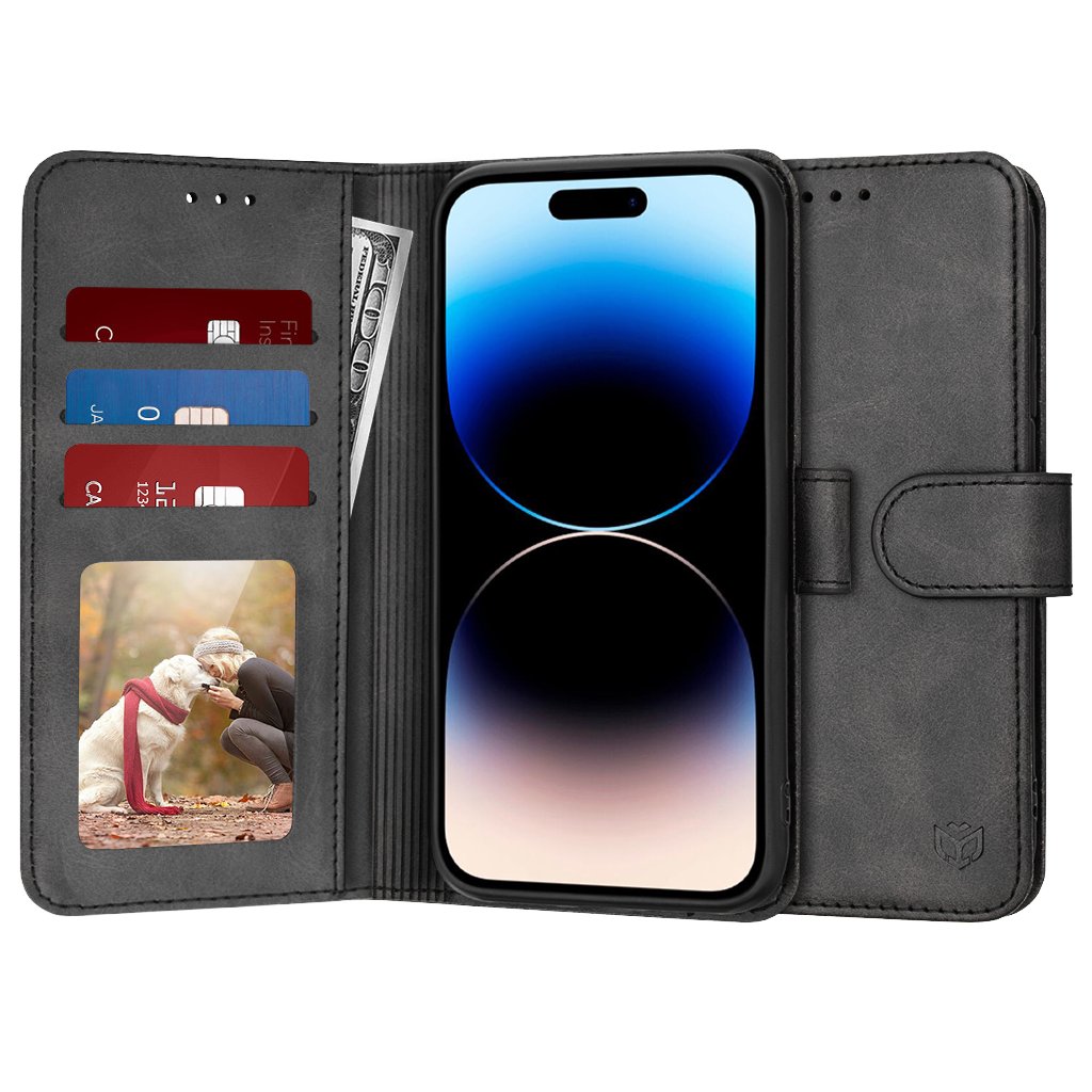 Predstavujeme Techsuit knižkové puzdro, ktoré je navrhnuté tak, aby poskytovalo komplexnú ochranu a zároveň podčiarklo eleganciu vášho iPhone 14 Pro. Toto puzdro v klasickej čiernej farbe kombinuje funkčnosť s nadčasovým dizajnom, ideálne pre každodenné použitie.