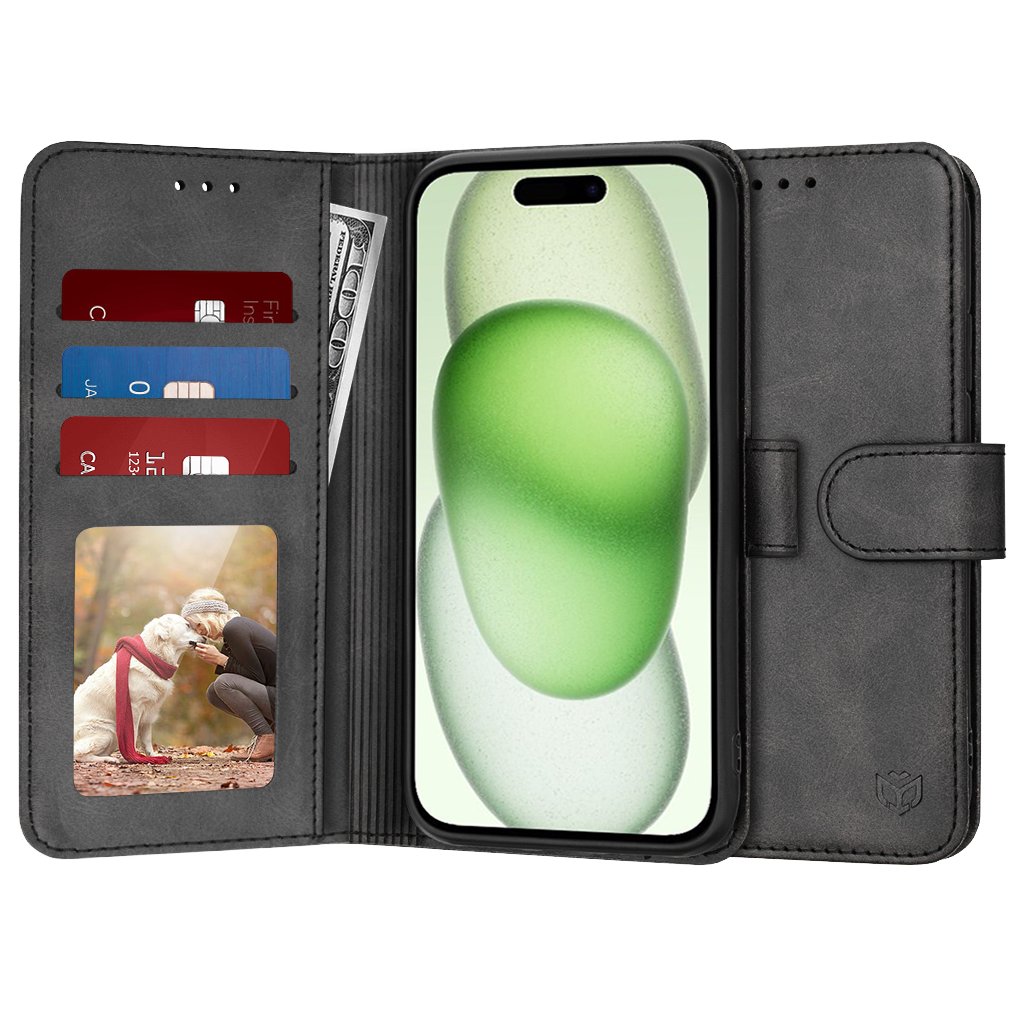 Techsuit Knižkové puzdro iPhone 15 Plus Čierne