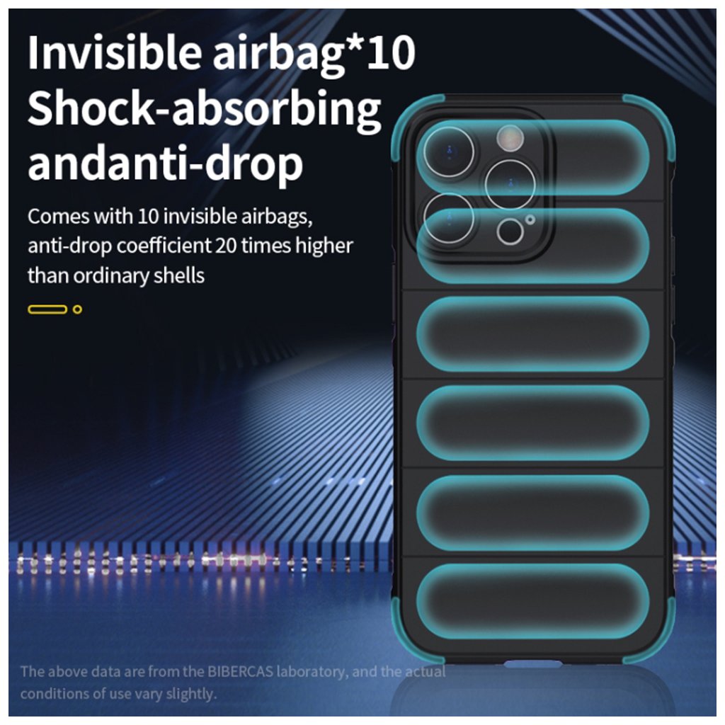 - Pre maximálnu ochranu proti pádom je puzdro vybavené desiatimi neviditeľnými airbagmi, ktoré zvyšujú jeho odolnosť proti nárazom a pádom až dvadsaťkrát oproti bežným krytom.