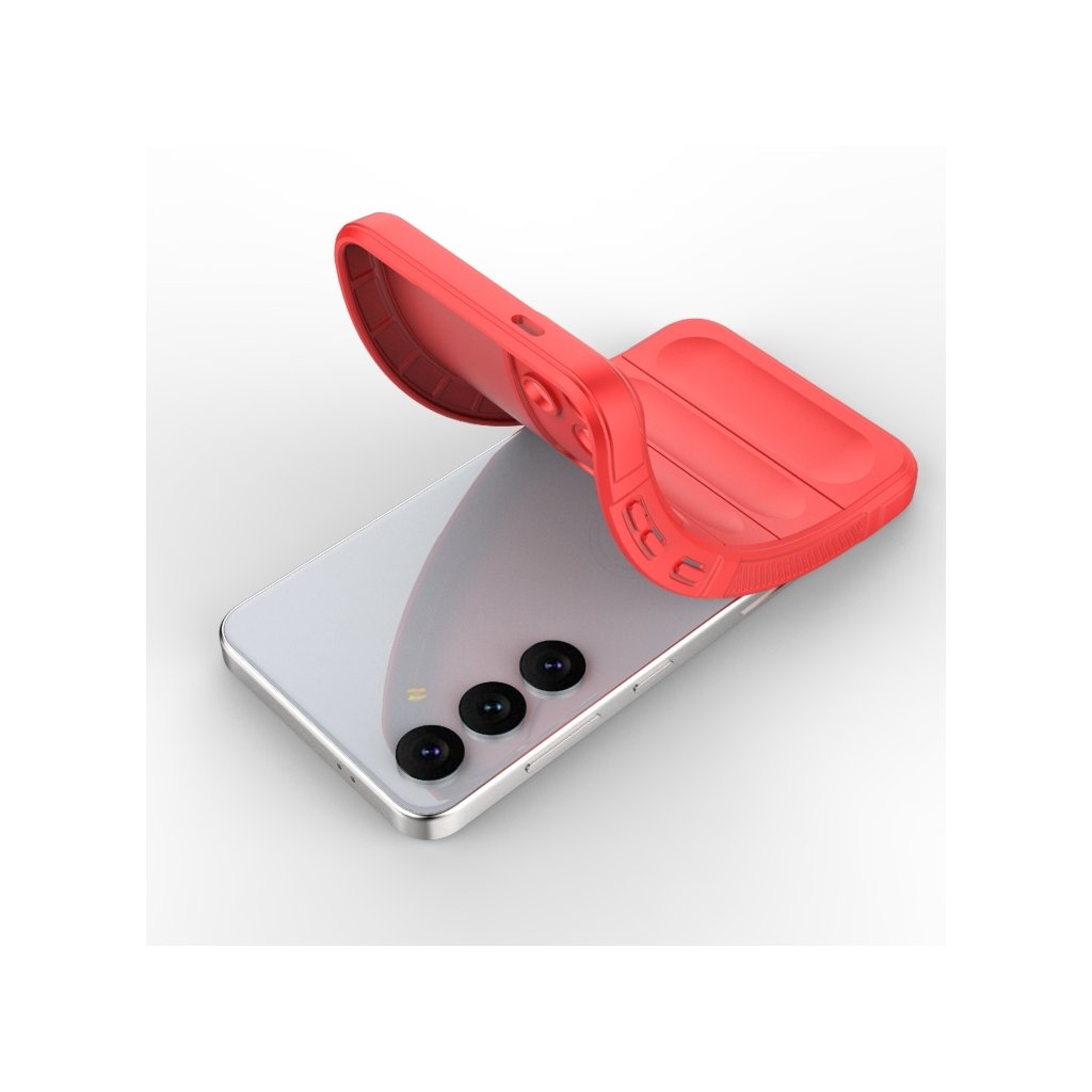 - Zadná strana je opatrená horizontálnymi, jemne vystúpenými rebrami, ktoré dodávajú puzdru moderný vzhľad a zlepšujú úchop.
