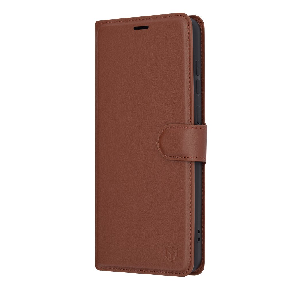 Puzdro Techsuit Leather Folio sa pýši nadčasovým dizajnom s textúrou imitujúcou kožu, ktorá dodáva vášmu telefónu sofistikovaný a luxusný vzhľad. Hnedá farba je elegantná a univerzálna, hodí sa pre každú príležitosť. Puzdro je typu "folio" alebo "peňaženka", čo znamená, že chráni telefón zo všetkých strán, vrátane displeja, vďaka odklápateľnej prednej strane.