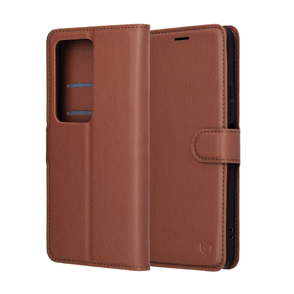 Puzdro Techsuit sa pýši nadčasovým dizajnom v sýto hnedej farbe, ktorá dodáva vášmu telefónu sofistikovaný vzhľad. * **Vonkajšia strana:** Vyrobená z kvalitnej **umelej kože** s jemnou textúrou, ktorá je príjemná na dotyk a zároveň odolná proti každodennému opotrebovaniu. * **Precízne prešívanie:** Po okrajoch podčiarkuje starostlivé spracovanie a dodáva puzdru luxusný nádych. * **Folio dizajn:** S prednou klapkou chráni displej pred poškriabaním a nečistotami. * **Praktické zapínanie:** Na magnetickú pracku zaisťuje, že puzdro zostane bezpečne zatvorené. * **Vnútorná vanička:** Integrovaná silikónová vanička telefón pevne drží a chráni jeho boky a rohy. * **Presné výrezy:** Pre fotoaparát, konektory a tlačidlá sú presne umiestnené, čo zaručuje plnú funkčnosť telefónu bez nutnosti vyberania z puzdra.Prečo zvoliť Techsuit?