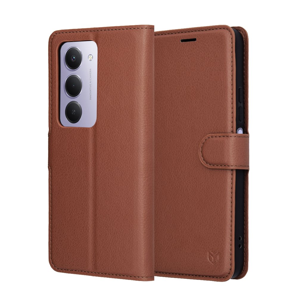 Techsuit Kožené Folio Puzdro pre Xiaomi Redmi 15 4G / Redmi 15 5G – Hnedé