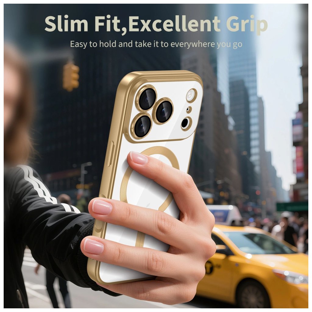 Puzdro Techsuit Luxury Crystal MagSafe sa pýši priehľadnou zadnou stranou, ktorá nechá vyniknúť originálny dizajn a logo vášho iPhone 17 Pro Max. Okraje puzdra a oblasť okolo fotoaparátu sú vyvedené v elegantnej tmavozelenej farbe, ktorá dodáva celku luxusný a sofistikovaný vzhľad. Integrovaný MagSafe krúžok je diskrétne viditeľný na zadnej strane a zaisťuje perfektnú kompatibilitu s MagSafe príslušenstvom a bezdrôtovým nabíjaním. Kryt je navrhnutý s ohľadom na maximálnu ochranu. Disponuje zvýšenými okrajmi okolo displeja a modulu fotoaparátu, čo efektívne chráni tieto najzraniteľnejšie časti telefónu pred poškriabaním a nárazmi pri položení na rovný povrch. Vďaka štíhlemu profilu a ergonomickému dizajnu sa puzdro skvele drží v ruke a poskytuje vynikajúci úchop, čo minimalizuje riziko vykĺznutia.Prečo zvoliť Techsuit?