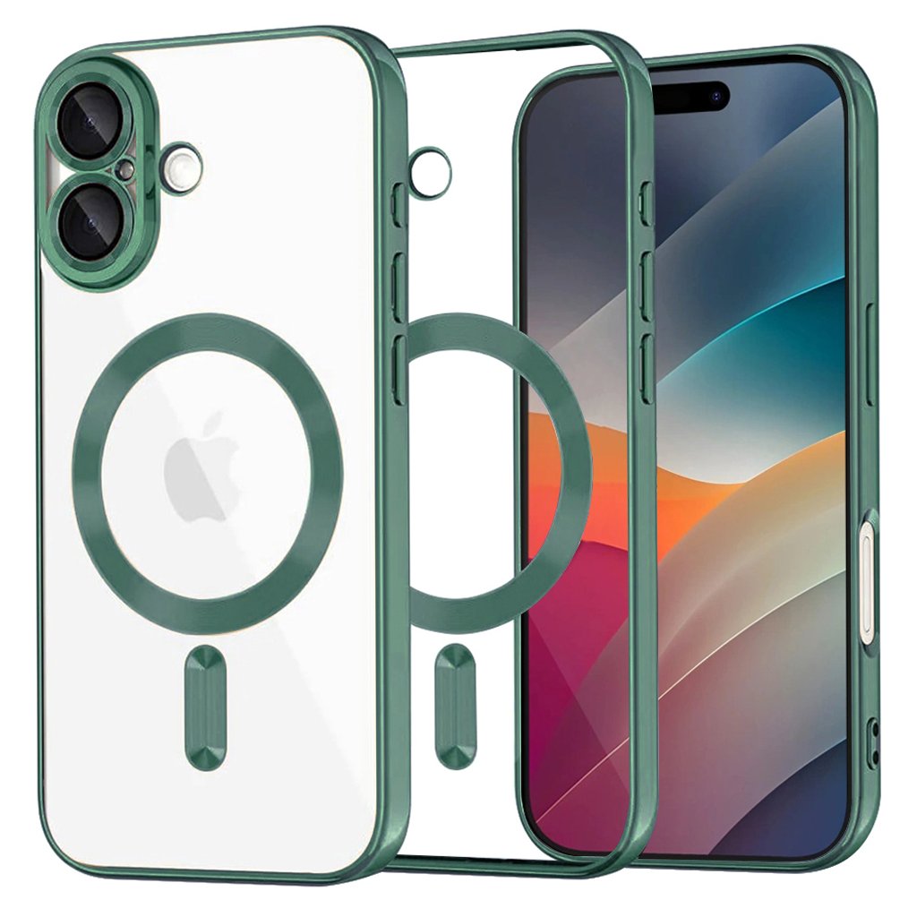 Puzdro Techsuit Luxury Crystal MagSafe sa pýši priehľadnými zádami, ktoré nechajú vyniknúť originálnej kráse vášho iPhone 17. Rám puzdra a precízne okruží okolo fotoaparátov sú vyvedené v elegantnej tmavo zelenej farbe, ktorá dodáva telefónu sofistikovaný vzhľad. Integrovaný MagSafe krúžok v farbe rámu zabezpečuje bezproblémové a pevné pripojenie k MagSafe príslušenstvu, ako sú nabíjačky alebo peňaženky.