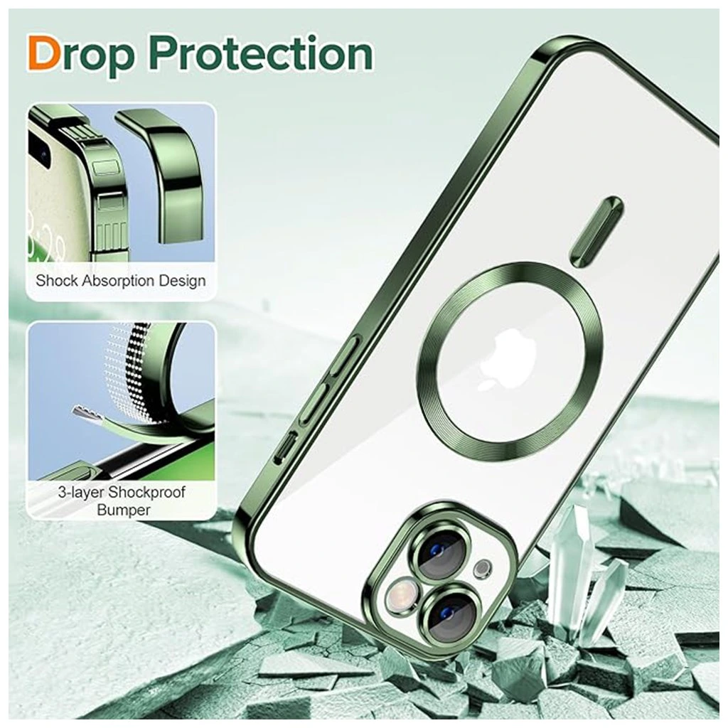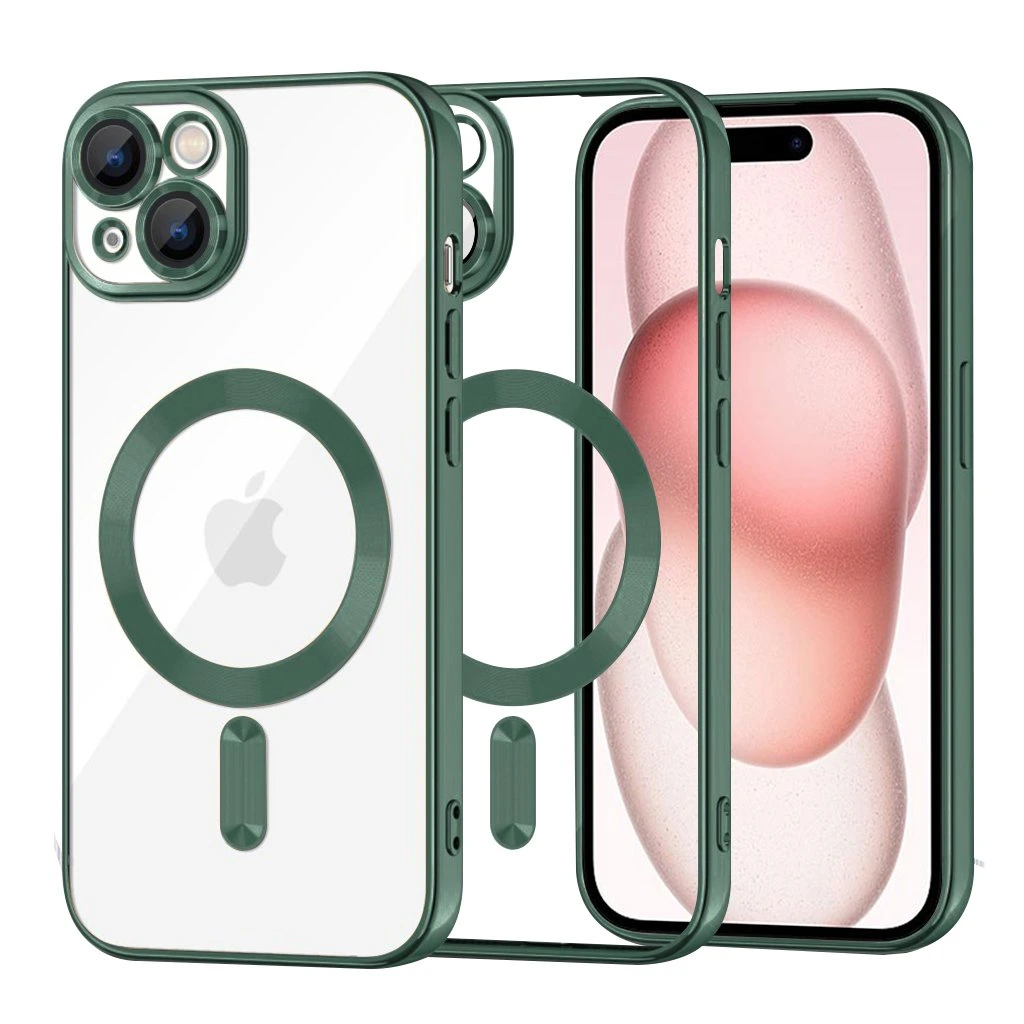 Techsuit Luxusný Krištáľ MagSafe iPhone 15 Tmavo Zelená Doprajte svojmu iPhone 15 prvotriednu ochranu a elegantný vzhľad s puzdrom Techsuit Luxusný Krištáľ MagSafe v tmavozelenej farbe. Tento kryt je navrhnutý tak, aby dokonale podčiarkol originálny dizajn vášho telefónu a zároveň mu poskytol spoľahlivú ochranu pred každodenným opotrebovaním. Dizajn a parametre:Puzdro sa vyznačuje krištáľovo čistou zadnou stranou, ktorá nechá vyniknúť krásu vášho iPhone 15. Okraje puzdra, rovnako ako výrazný MagSafe krúžok a precízne ohraničenie modulu fotoaparátu, sú vyhotovené v hlbokom tmavozelenom odtieni. Táto kombinácia transparentnosti a sýtej farby dodáva puzdru luxusný a sofistikovaný vzhľad. Integrovaný MagSafe krúžok zaisťuje bezproblémovú kompatibilitu s MagSafe príslušenstvom a rýchle bezdrôtové nabíjanie. Značka Techsuit: Kvalita, na ktorú sa môžete spoľahnúť