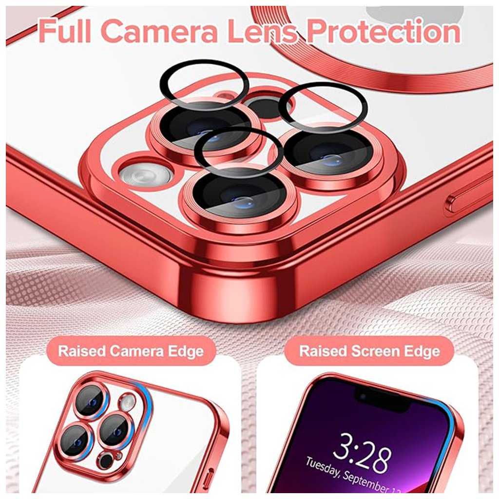 Puzdro sa pýši priehľadným zadným panelom, ktorý nechá vyniknúť originálny dizajn vášho iPhone 13 Pro. Okraje puzdra a výrazný MagSafe krúžok sú vyhotovené v lesklej červenej farbe, ktorá dodáva celku luxusný a moderný vzhľad. Tento dizajnový prvok nielenže upúta pozornosť, ale taktiež podčiarkuje prémiový charakter vášho zariadenia. Precízne spracovanie zahŕňa aj zvýšené okraje okolo fotoaparátu, ktoré zaisťujú maximálnu ochranu citlivých šošoviek pred poškriabaním a nárazmi. Integrovaná MagSafe technológia je elegantne zvýraznená kruhovým prvkom na zadnej strane, čo zaisťuje bezproblémovú kompatibilitu s MagSafe príslušenstvom a rýchle bezdrôtové nabíjanie.