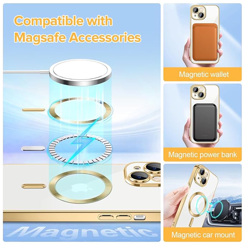 - Integrovaný zlatý MagSafe krúžok na zadnej strane zaisťuje bezproblémovú kompatibilitu so všetkým MagSafe príslušenstvom, od bezdrôtových nabíjačiek po magnetické peňaženky a držiaky do auta.