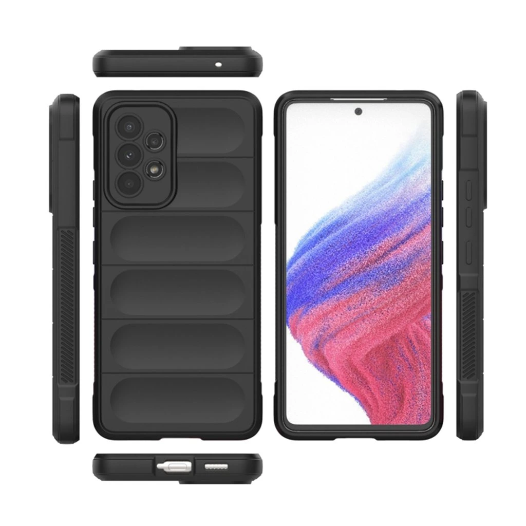 Puzdro Magic Shield sa pýši minimalistickým a zároveň funkčným dizajnom. Jeho čierna farba dodáva telefónu sofistikovaný vzhľad, zatiaľ čo precízne tvarovanie dokonale obopína krivky vášho Samsung Galaxy A53 5G. Zvýšené okraje okolo displeja a fotoaparátu poskytujú extra vrstvu ochrany proti poškriabaniu a nárazom, zatiaľ čo robustný, ale príjemný materiál zaisťuje pevný úchop a minimalizuje riziko vykĺznutia telefónu z ruky. Vďaka svojmu tenkému profilu puzdro nepridáva telefónu zbytočný objem a zachováva jeho elegantnú líniu.