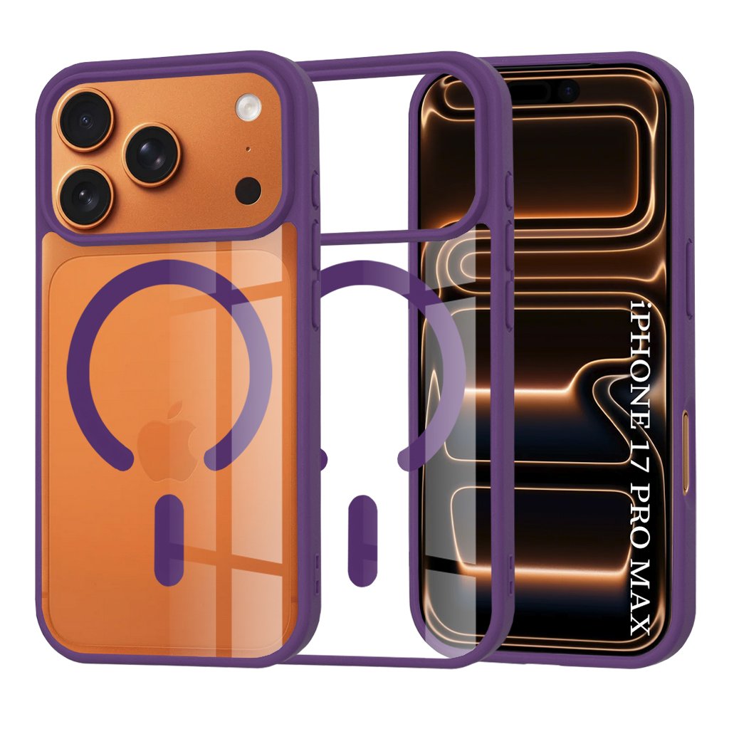 Puzdro Techsuit MagSafe Pro pre iPhone 17 Pro Max vo fialovej farbe kombinuje minimalistický štýl s maximálnou funkčnosťou. Jeho dizajn je charakteristický priehľadnou zadnou stranou, ktorá necháva vyniknúť originálnu farbu a logo vášho telefónu, zatiaľ čo elegantné fialové okraje a rámček okolo fotoaparátu dodávajú zariadeniu sofistikovaný vzhľad. Integrovaný MagSafe krúžok v rovnakej fialovej farbe zaisťuje perfektnú kompatibilitu s MagSafe príslušenstvom a bezdrôtovým nabíjaním.