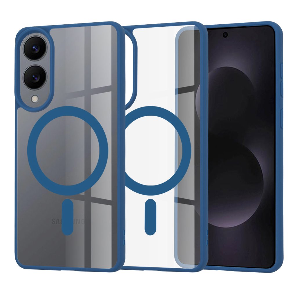 Toto elegantné puzdro v sýto modrej farbe sa pýši priehľadnou zadnou stranou, ktorá nechá vyniknúť originálnemu dizajnu vášho telefónu Samsung Galaxy S25 Edge. Modré okraje a výrazný modrý kruh s vertikálnou čiarou uprostred, indikujúci integrovanú technológiu MagSafe, dodávajú puzdru moderný a funkčný vzhľad. Vďaka MagSafe je zabezpečené jednoduché a pevné prichytenie kompatibilného príslušenstva, ako sú bezdrôtové nabíjačky alebo držiaky. Puzdro je navrhnuté tak, aby dokonale obopínalo krivky telefónu a zároveň poskytovalo zvýšenú ochranu okolo fotoaparátu a displeja.
