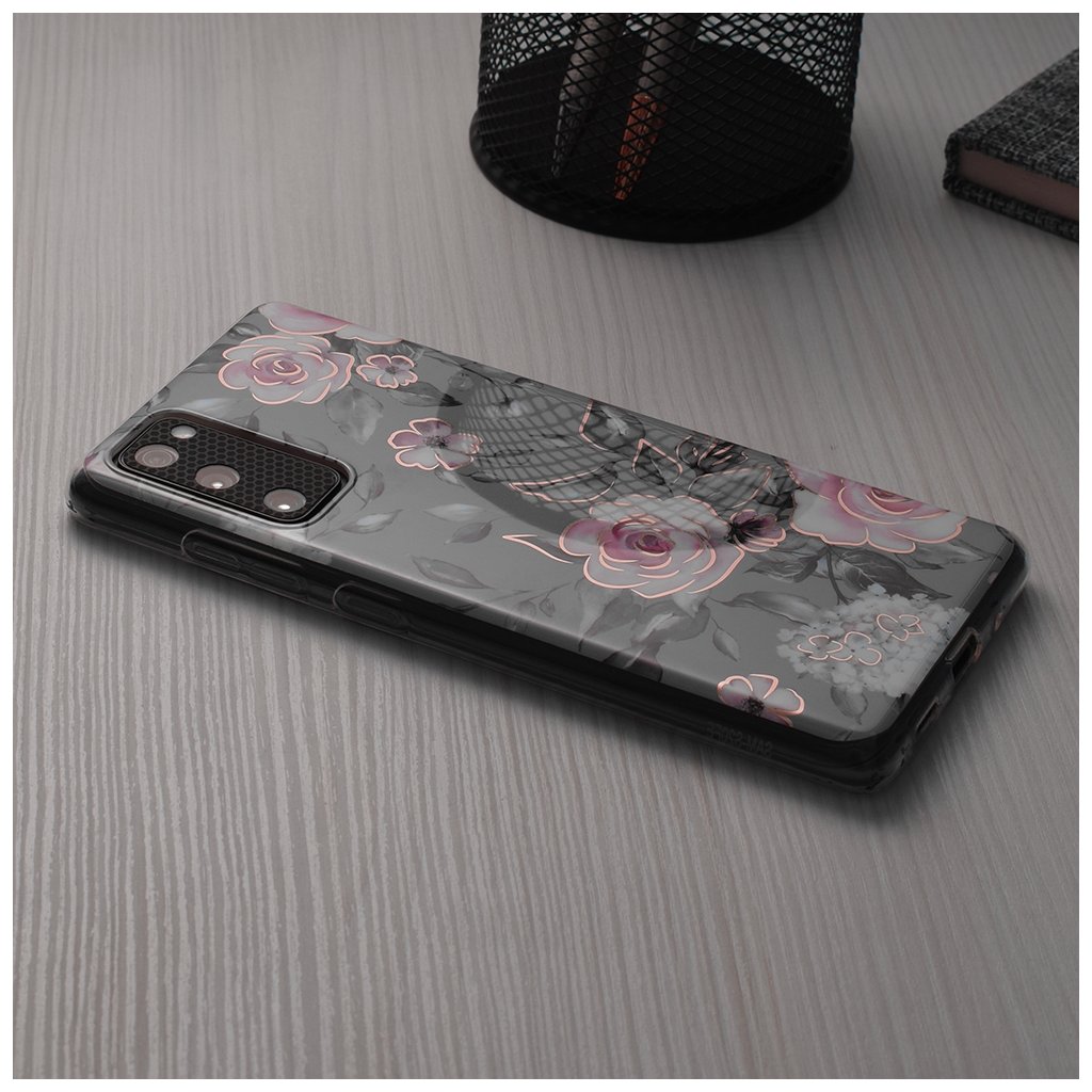 - Puzdro sa pýši sofistikovaným dizajnom s jemným sivým podkladom, ktorý je zdobený nádhernými kvetmi.