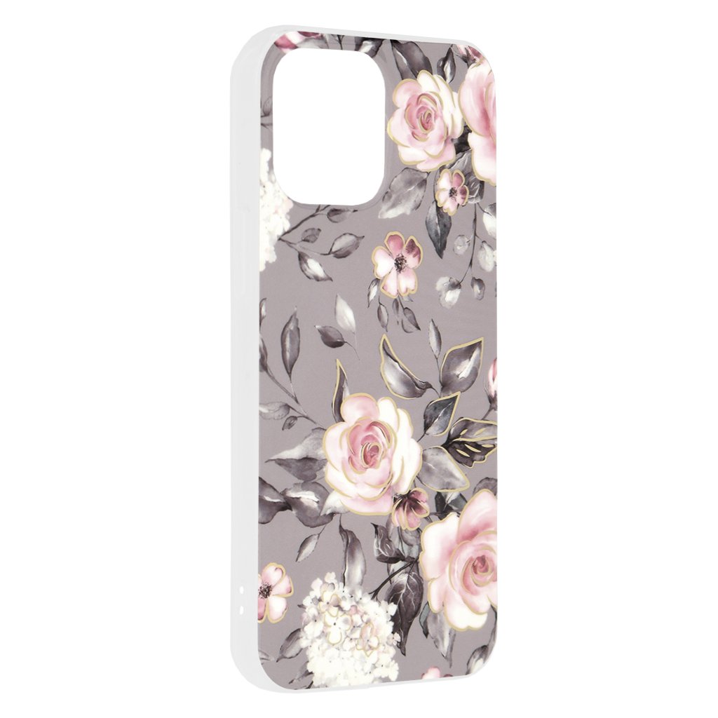 Techsuit Mramorová séria iPhone 13 Pro Max Kvet Ruth sivá
