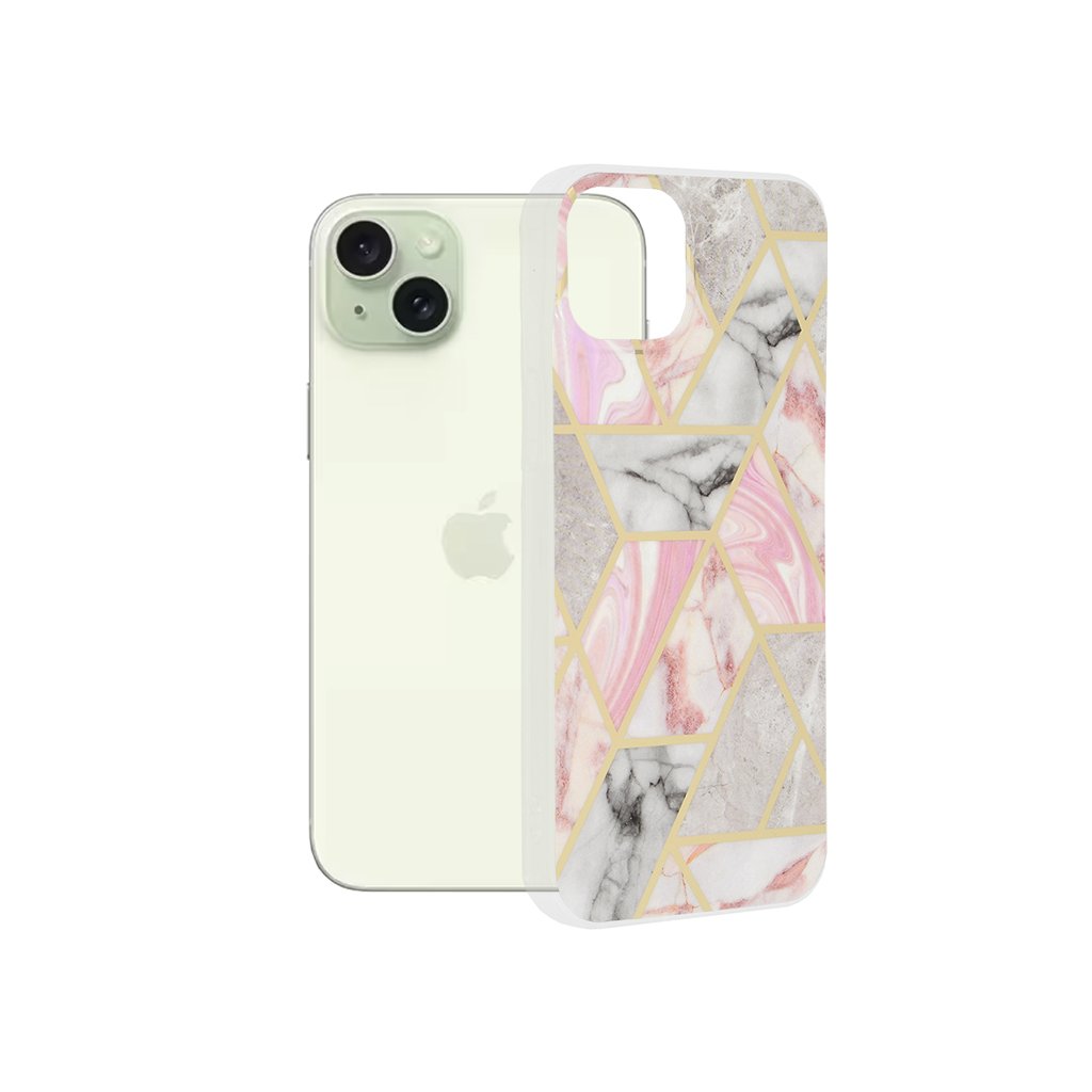Techsuit Mramorová séria iPhone 15 Plus Ružový šesťuholník