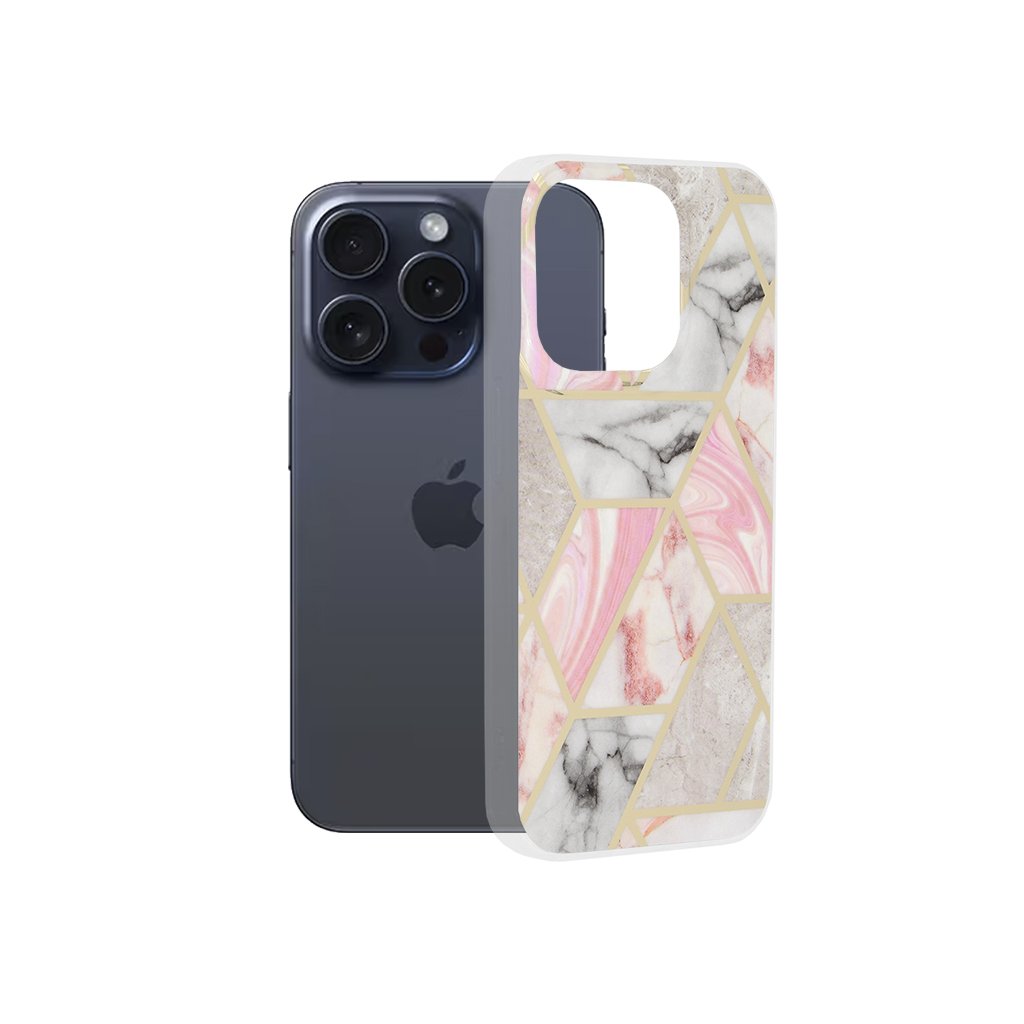 Techsuit Mramorová séria iPhone 15 Pro Ružový šesťuholník