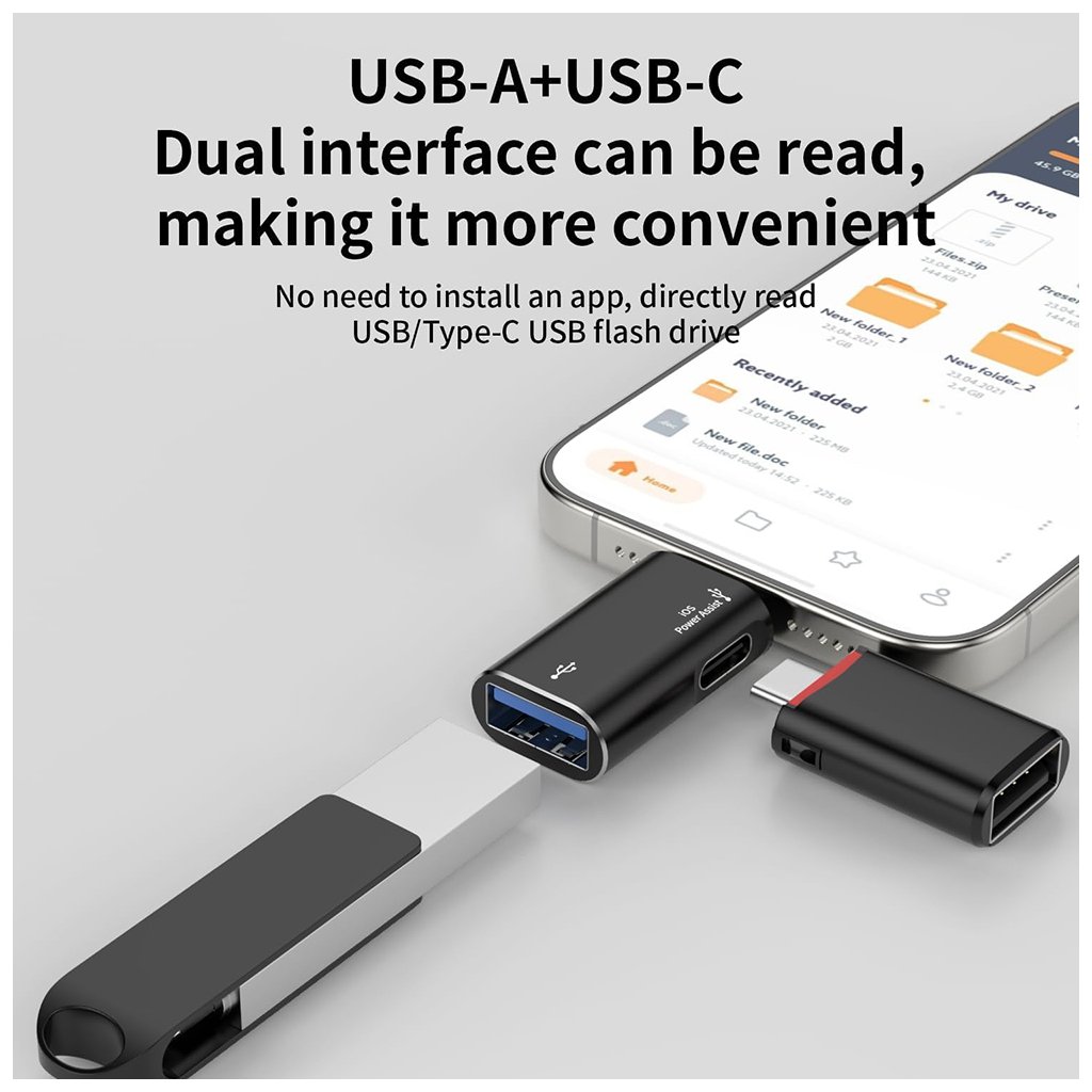 S týmto 2-v-1 adaptérom získate bezkonkurenčnú flexibilitu. Môžete priamo pripojiť a čítať dáta z USB flash diskov alebo USB-C flash diskov bez nutnosti inštalácie akýchkoľvek aplikácií. Adaptér podporuje pripojenie širokej škály periférií, vrátane: