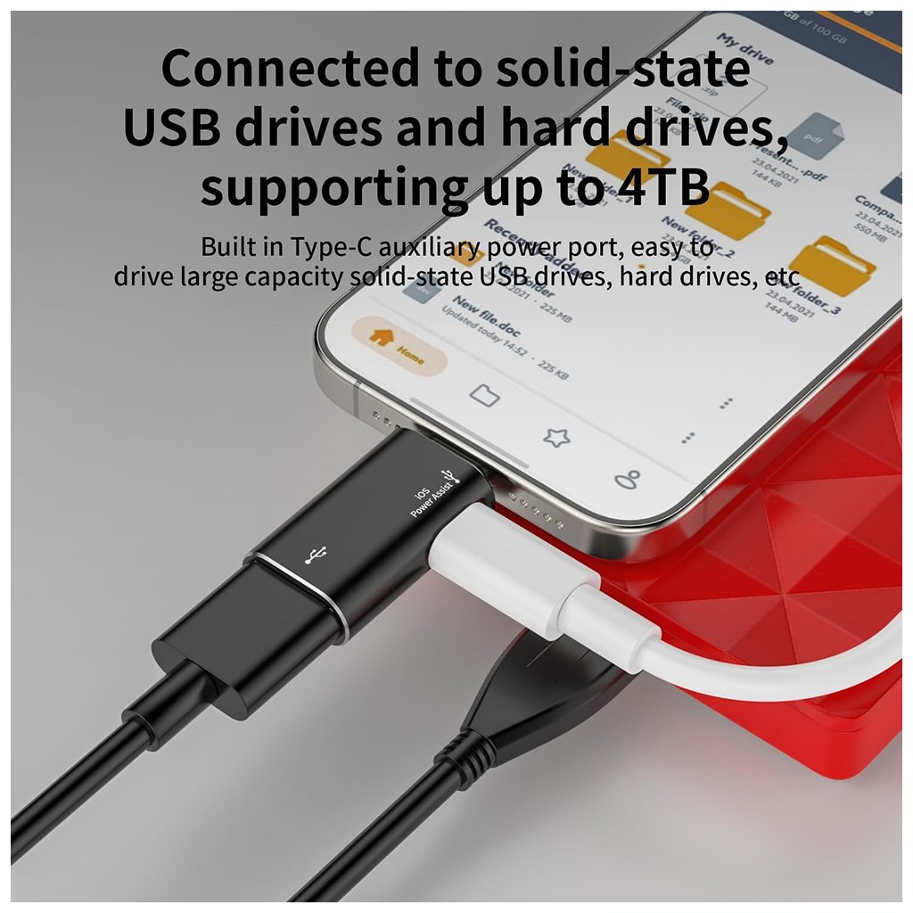 Díky funkcii pomocného napájania je schopný bez problémov pracovať s externými SSD a HDD diskami s kapacitou až 4 TB. Navyše umožňuje priame pripojenie digitálnych slúchadiel s USB-C konektorom k vášmu iPhonu, čo vám umožní počúvať hudbu kedykoľvek a kdekoľvek.