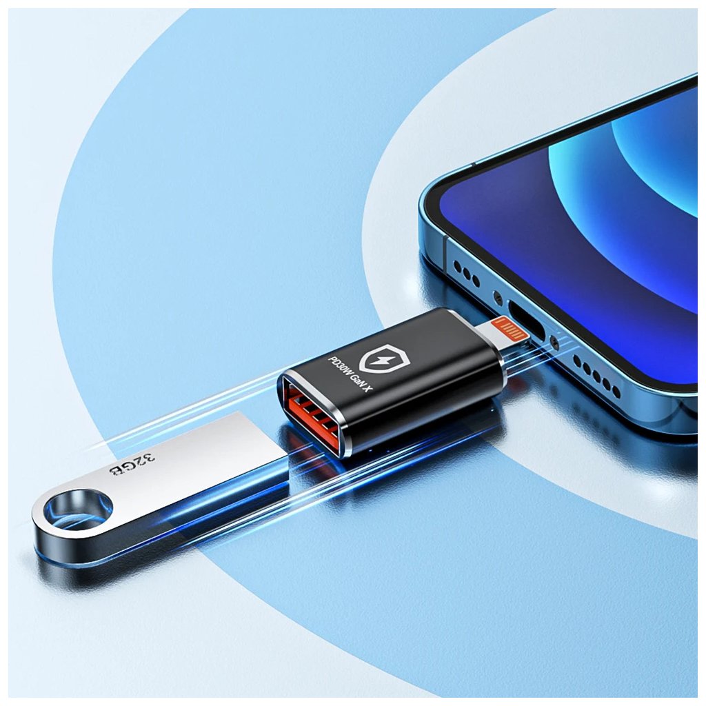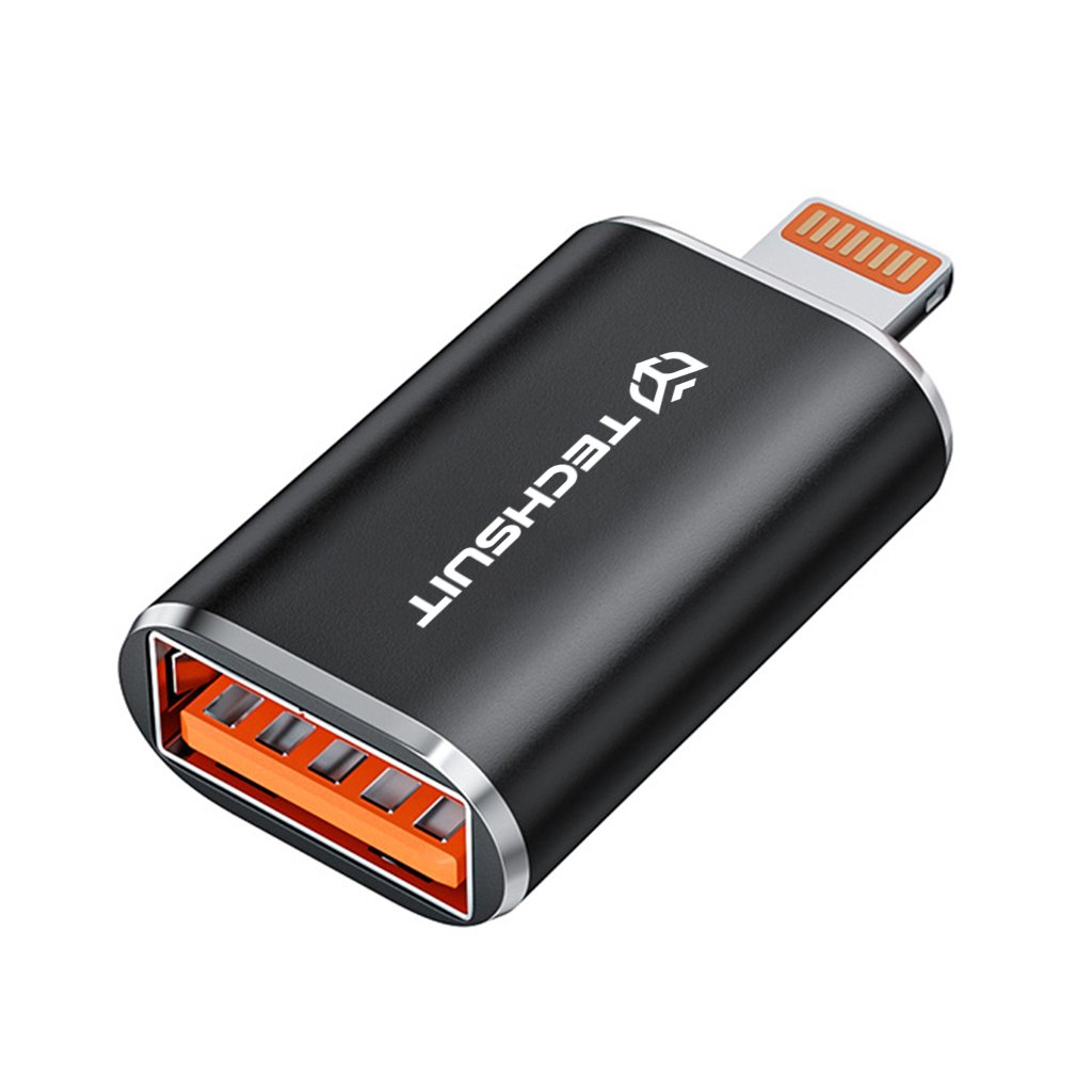 Techsuit Premium OTG Adaptér HyperPort (A6) USB3.0 na Lightning PD30W 5Gbps GaN pre iPhone čierna oranžová