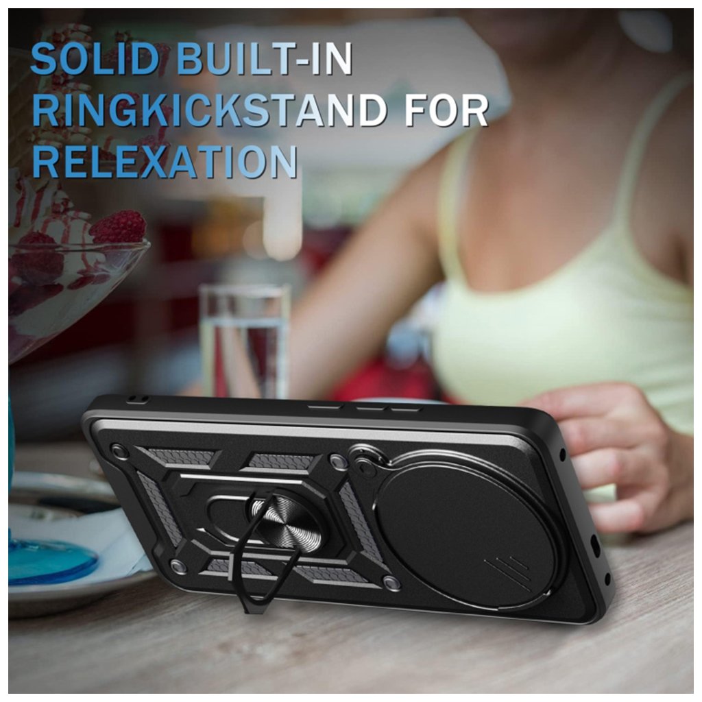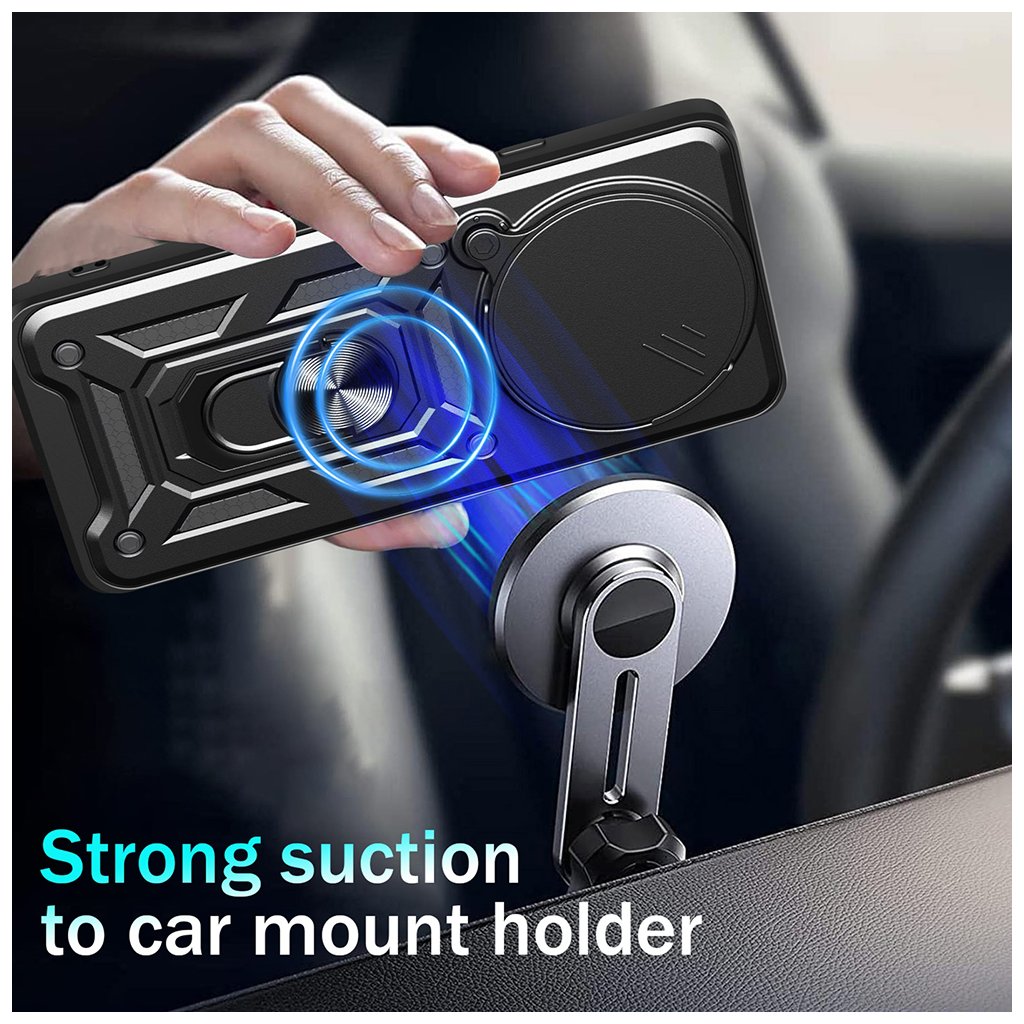 Ďalšou praktickou súčasťou je vstavaný kovový krúžok, ktorý slúži ako stabilný stojan pre pohodlné sledovanie obsahu a zároveň ako bezpečný úchyt pre zníženie rizika pádu telefónu. Vďaka magnetickým vlastnostiam je krúžok kompatibilný s magnetickými držiakmi do auta, čo zaisťuje jednoduché a bezpečné upevnenie vášho telefónu počas jazdy. Zosilnené rohy a celková konštrukcia krytu garantujú mimoriadnu odolnosť proti pádom a otrasom, čím chránia vaše zariadenie aj v náročných podmienkach.