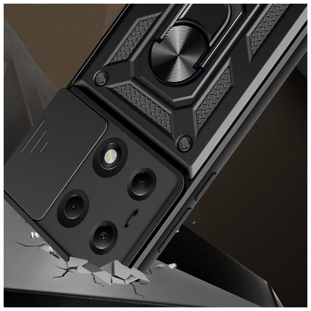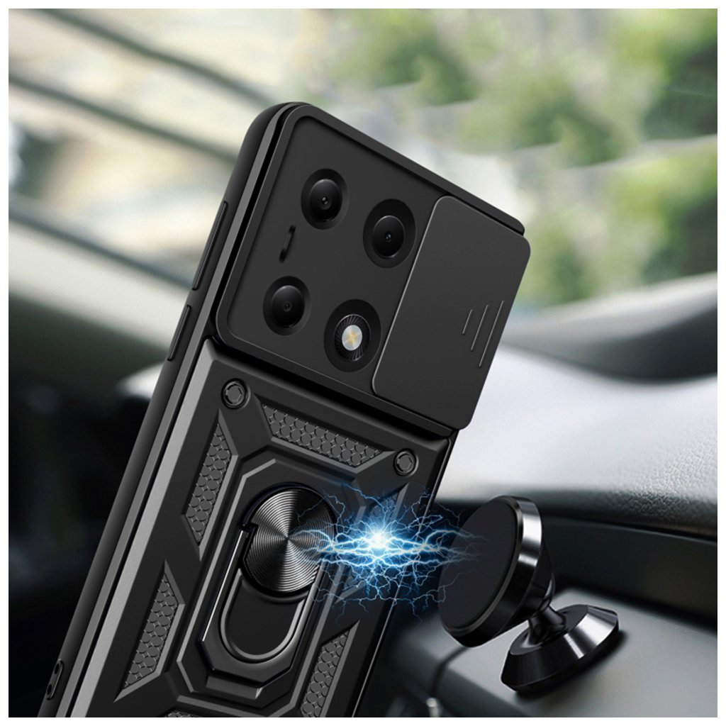 Puzdro Techsuit CamShield Series sa vyznačuje robustným a funkčným dizajnom. Jeho tmavomodrá farba dodáva telefónu moderný a sofistikovaný vzhľad. Kľúčovým prvkom je integrovaný posuvný kryt fotoaparátu (CamShield), ktorý efektívne chráni šošovky pred poškriabaním, prachom a nechcenými nárazmi, a zároveň zaisťuje vaše súkromie. Zadná strana puzdra je doplnená o praktický kovový krúžok, ktorý slúži ako bezpečný držiak pre lepší úchop telefónu a zároveň ako stabilný stojan pre pohodlné sledovanie obsahu. Celkový vzhľad je podčiarknutý textúrovanými detailmi a zosilnenými rohmi, ktoré naznačujú vysokú úroveň ochrany proti pádom a nárazom.Precízne spracovanie a pomer cena/výkon