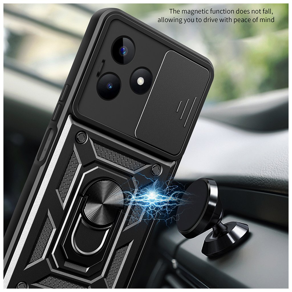 Puzdro Techsuit CamShield v elegantnej **čiernej farbe** sa pýši moderným a zároveň odolným dizajnom. Jeho zadná strana je vybavená textúrovaným povrchom s geometrickými prvkami, ktoré nielenže dodávajú krytu dynamický vzhľad, ale taktiež zaisťujú pevný a istý úchop. Kľúčové parametre a vlastnosti: * **Kompatibilita:** Xiaomi Redmi Note 13 5G * **Farba:** Čierna * **Materiál:** Kvalitné, zdravotne nezávadné materiály * **Integrovaný kovový krúžok:** * Slúži ako **praktický stojan** pre pohodlné sledovanie obsahu. * Poskytuje **bezpečný držiak** pre stabilnejšiu manipuláciu s telefónom. * **Posuvný kryt fotoaparátu (CamShield):** * Efektívne chráni citlivé šošovky pred poškriabaním, prachom a nechcenými odtlačkami. * Zaisťuje vaše súkromie. * **Odolnosť:** Dlhá životnosť a odolnosť proti opotrebovaniu. * **Úchop:** Textúrovaný povrch pre pevný a istý úchop.Prečo si vybrať značku Techsuit?