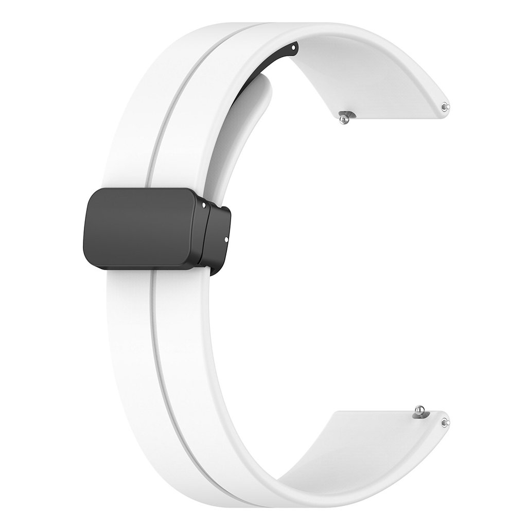 Zapínanie je riešené inovatívnou magnetickou sponou v čiernej farbe, ktorá zabezpečuje jednoduché a rýchle nasadenie aj zloženie hodiniek. Vďaka tomuto riešeniu sa remienok dokonale prispôsobí vášmu zápästiu a drží pevne na svojom mieste. Kontrast bieleho remienka s čiernou sponou a telom hodiniek vytvára atraktívny vizuálny efekt.