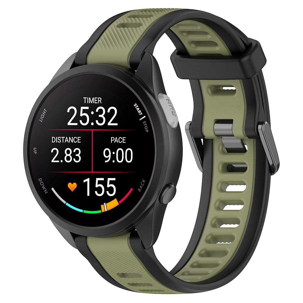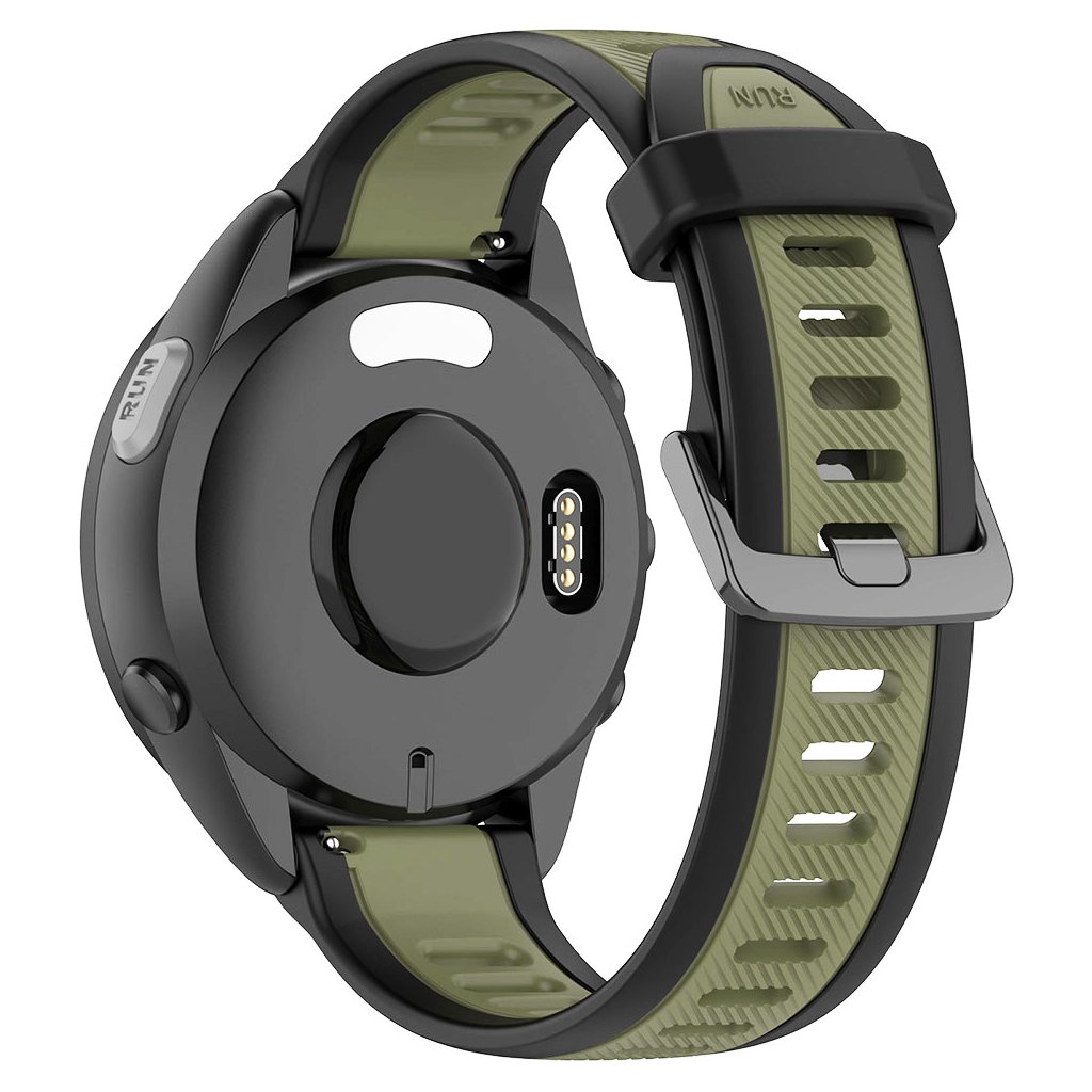 * **Materiál:** Vysoko kvalitný a odolný silikón, príjemný na dotyk a ideálny pre každodenné nosenie aj športové aktivity. * **Šírka:** Štandardná **22mm**, zaisťujúca širokú kompatibilitu. * **Farba:** Moderná **khaki** (olivovo zelená) v kombinácii s čiernymi detailmi pre sofistikovaný vzhľad. * **Zapínanie:** Klasická **kovová pracka** v tmavom prevedení pre bezpečné a jednoduché upevnenie. * **Dizajn:** Dvojdielny športový dizajn s perforáciou pre lepšiu priedušnosť a odvod potu. * **Kompatibilita:** Určené pre inteligentné hodinky značiek **Huawei** a **Xiaomi**.Dizajn a štýl
