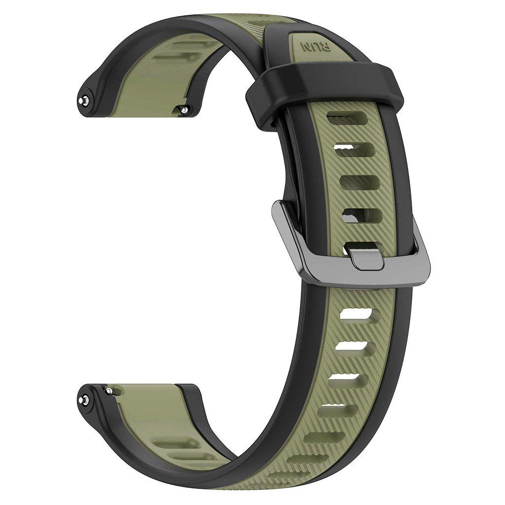 Remienok Techsuit W053 sa pýši dvojfarebným prevedením v atraktívnej khaki zelenej a klasickej čiernej farbe, ktoré dodáva hodinkám dynamický a športový vzhľad. Vonkajšia strana je v elegantnej čiernej, zatiaľ čo vnútorná časť, ktorá prilieha k pokožke, je v modernom khaki odtieni. Vyrobený je z vysoko kvalitného silikónu, ktorý je známy svojou odolnosťou, flexibilitou a príjemným pocitom na zápästí. Materiál je hypoalergénny a odolný voči potu aj vode, čo z neho robí ideálnu voľbu pre aktívny životný štýl.