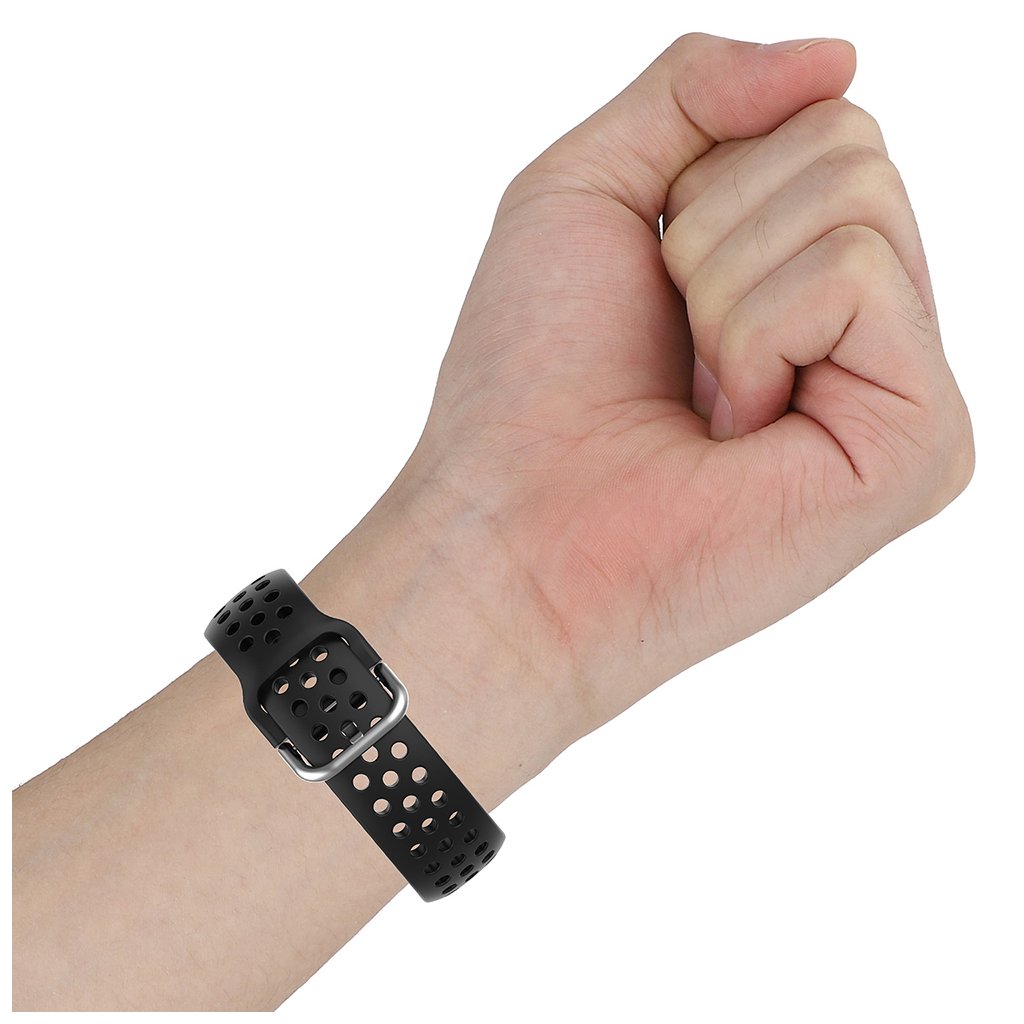 Remienok Techsuit sa pýši moderným a funkčným dizajnom. Je vyrobený z prémiového silikónu, ktorý je príjemný na dotyk, hypoalergénny a odolný voči potu aj vode. Jeho matne čierny povrch dodáva hodinkám sofistikovaný vzhľad, zatiaľ čo perforovaný dizajn zaisťuje vynikajúcu priedušnosť a zabraňuje hromadeniu vlhkosti pod remienkom, čo oceníte najmä pri intenzívnom cvičení. Integrované rýchloupínacie stĺpiky umožňujú jednoduchú a rýchlu výmenu remienka bez použitia náradia, takže môžete svoj štýl meniť behom okamihu. Strieborná spona z nehrdzavejúcej ocele potom zaručuje bezpečné a spoľahlivé uchytenie na vašom zápästí.