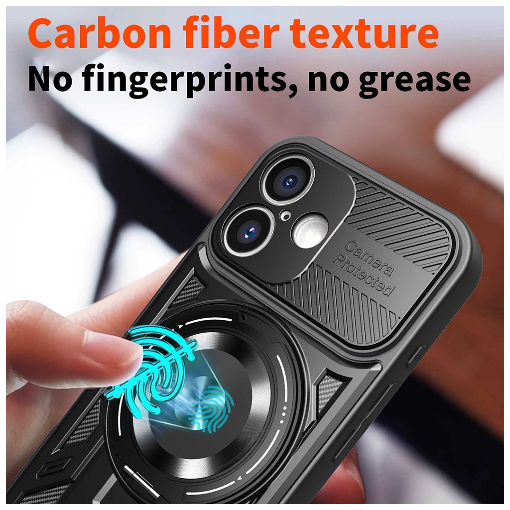 Jedným z kľúčových prvkov dizajnu je inovatívna ochrana fotoaparátu. Puzdro disponuje vyvýšenou oblasťou okolo modulu fotoaparátu a posuvným krytom, ktorý chráni šošovky pred poškriabaním a nečistotami, keď ich nepoužívate. Niektoré časti puzdra sú zdobené textúrou imitujúcou karbonové vlákna, čo podčiarkuje jeho športový a odolný charakter.