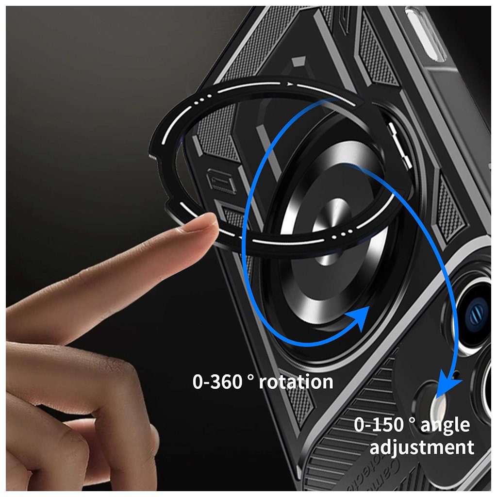 - Integrovaný kovový krúžok: Dominantným prvkom je integrovaný kovový krúžok na zadnej strane, ktorý slúži ako multifunkčný stojan. Ten umožňuje otáčanie v rozsahu 0-360° a nastavenie uhla v rozmedzí 0-150°, čo je ideálne pre pohodlné sledovanie obsahu vo vertikálnej aj horizontálnej polohe.