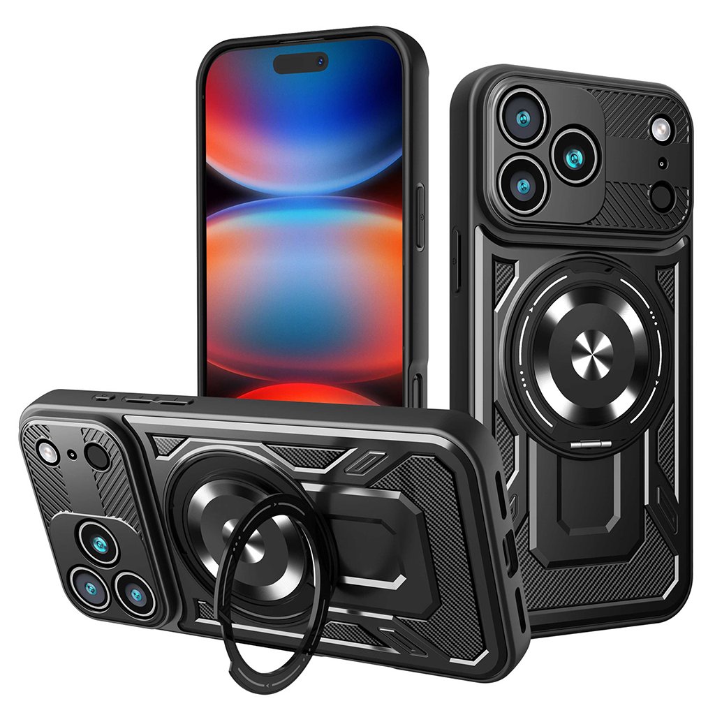 * **Názov produktu:** Techsuit RuggedCam * **Určené pre:** iPhone 17 Pro Max * **Farba:** Čierna * **Materiál:** Odolný kompozit s textúrou karbónových vlákien * **Funkcie:** * Vystužené rohy pre maximálnu ochranu proti pádom * Integrovaný kovový krúžok (držiak a stojan) * Zvýšené okraje pre ochranu fotoaparátov * Kryté, ale citlivé tlačidlá * Presné výrezy pre všetky porty a funkcie * **Značka:** Techsuit * **Štandard kvality:** Európsky štandard * **Zdravotná nezávadnosť:** ÁnoDodatočné parametre