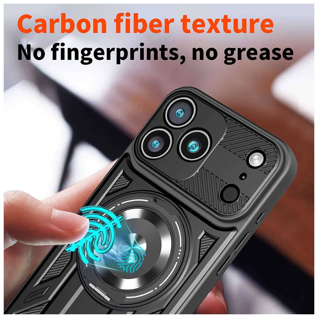 Puzdro Techsuit RuggedCam sa pýši **robustným a moderným dizajnom**, ktorý okamžite upúta pozornosť. Jeho povrch kombinuje niekoľko textúr, vrátane **elegantnej textúry imitujúcej karbónové vlákna**, ktorá nielen skvele vyzerá, ale aj efektívne **zabraňuje usadzovaniu odtlačkov prstov a mastnoty**. * **Prvotriedna ochrana fotoaparátu:** Zvýšené okraje okolo modulu fotoaparátu poskytujú špičkovú ochranu objektívov pred poškriabaním a nárazmi. * **Multifunkčný integrovaný krúžok:** Dominantným prvkom zadnej strany je integrovaný krúžok, ktorý slúži ako praktický stojan pre vertikálne aj horizontálne sledovanie obsahu. * **Otočný o 360°:** Umožňuje nastavenie uhla v rozsahu 0-150°, čo zaisťuje optimálny pozorovací komfort. * **Kompatibilita:** Táto časť puzdra je kompatibilná s **bezdrôtovým nabíjaním** a **magnetickými držiakmi**, čo rozširuje možnosti jeho využitia. * **Efektívny odvod tepla:** Vnútorná strana puzdra je opatrená špeciálnym vzorom pre rýchly odvod tepla, čím prispieva k optimálnemu výkonu vášho telefónu.Parametre produktu: